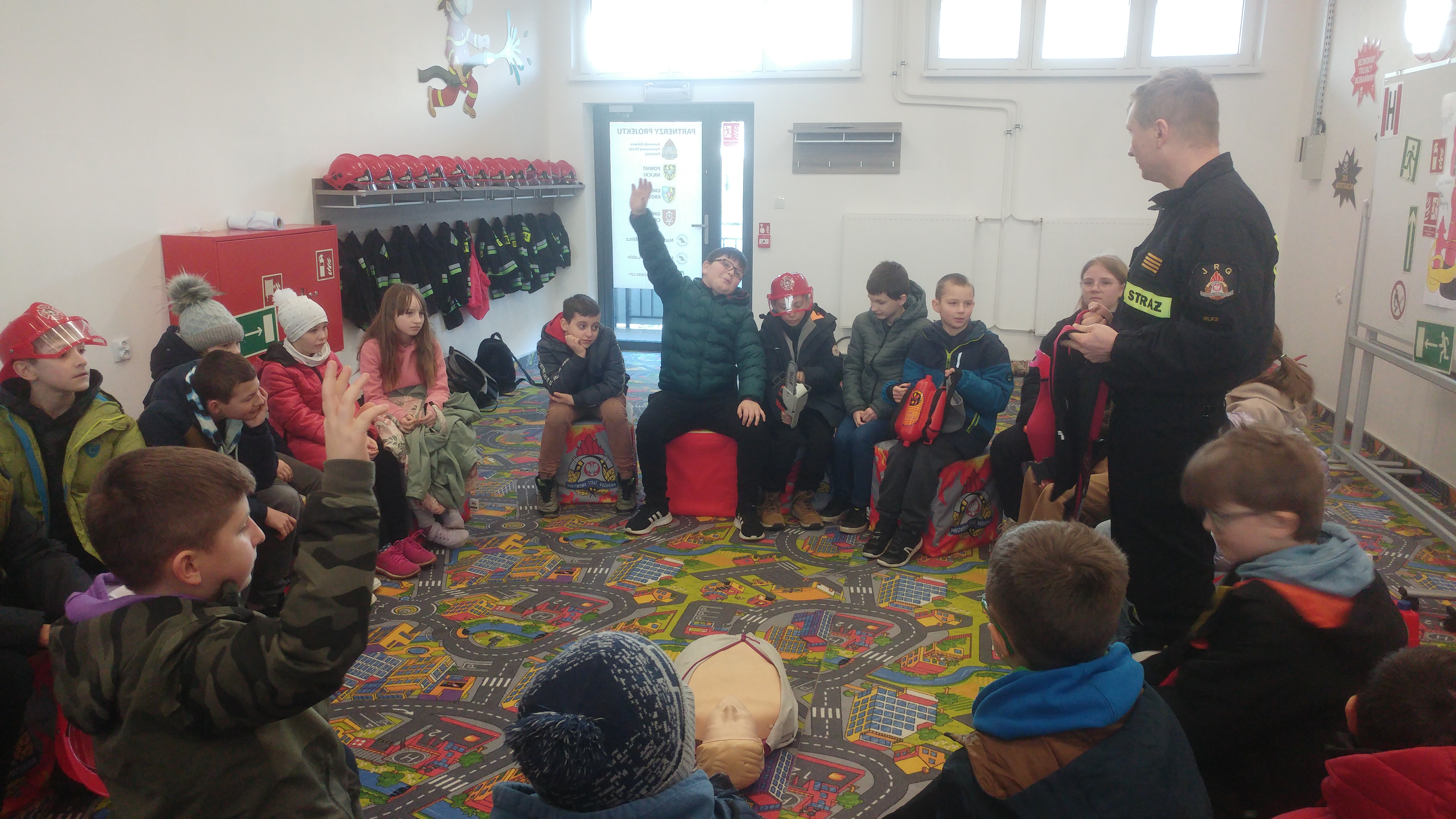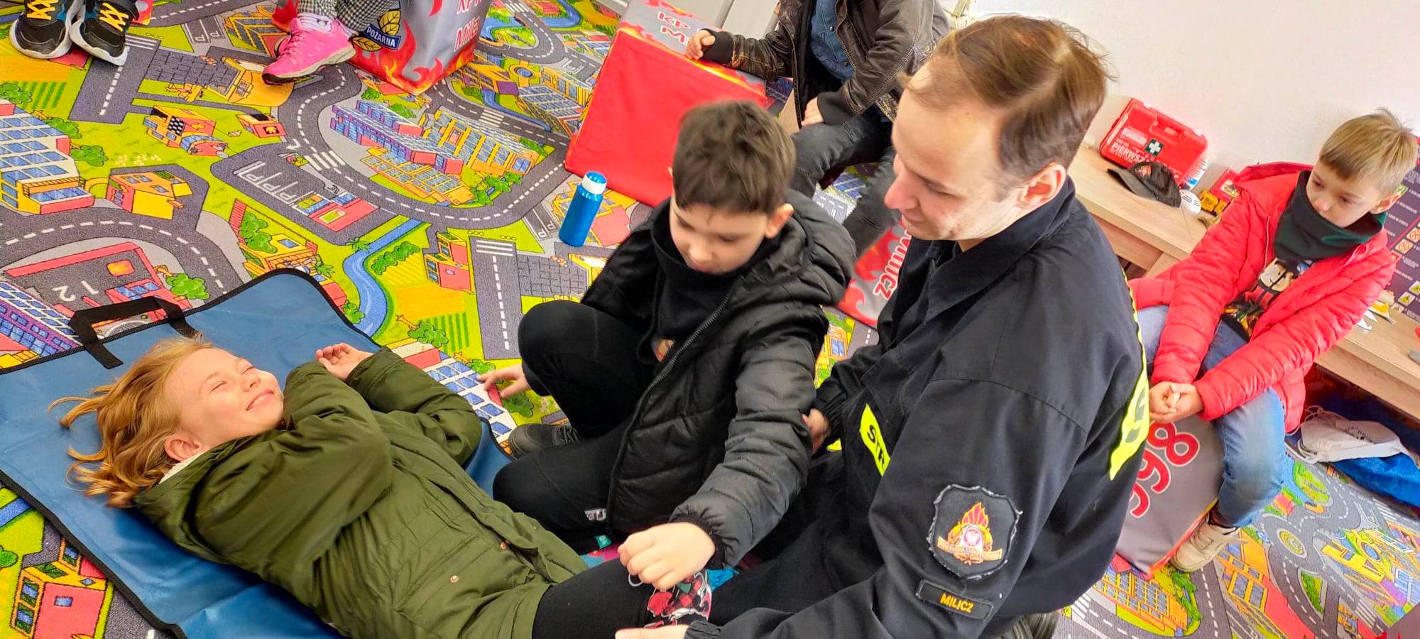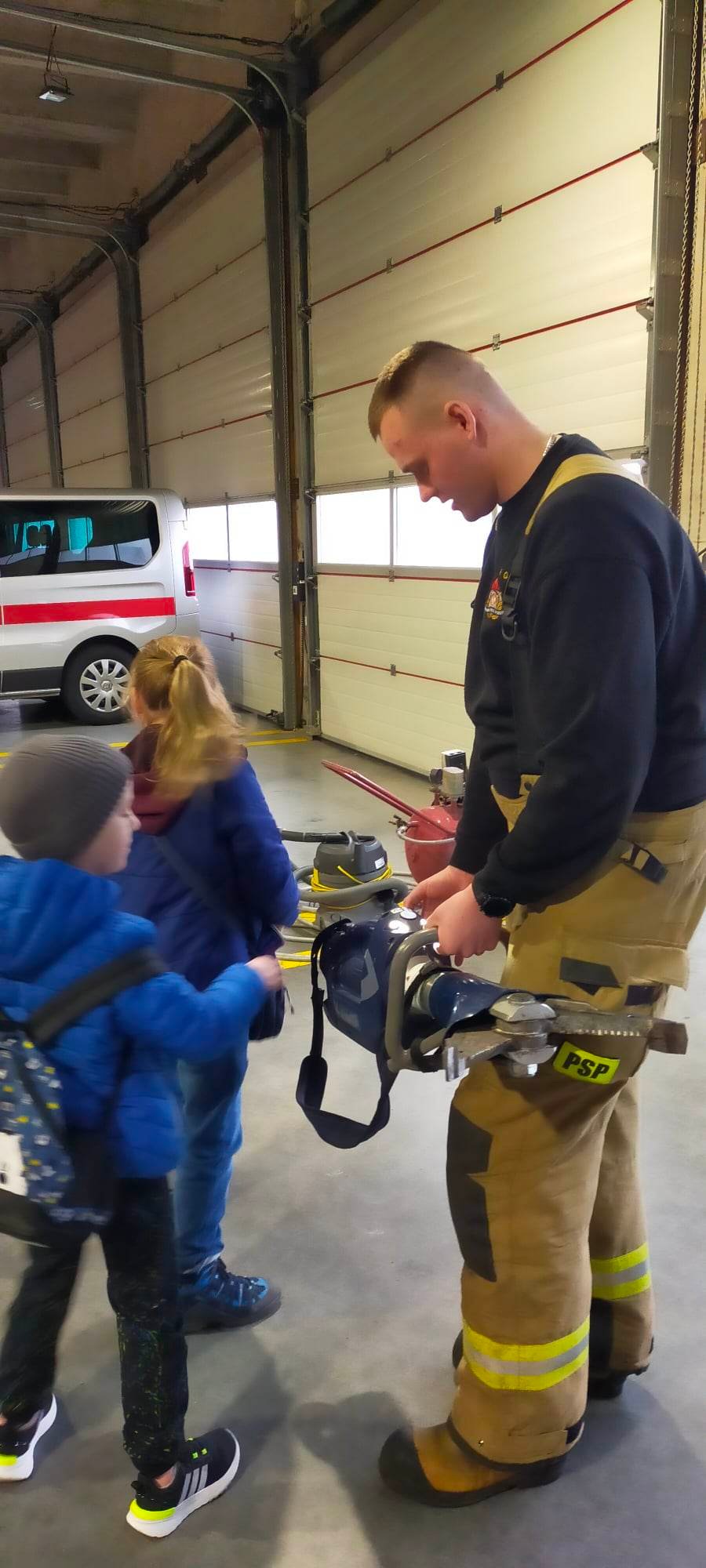 Dużą atrakcją była dla nich możliwość zapoznania się z sprzętem strażackim i wyposażeniem samochodów ratowniczo –gaśniczych, a ubierając hełm i mundur mogły poczuć się jak prawdziwy strażak. Mali strażacy poprawnie przeszli też szkolenie z pierwszej pomocy, aby pomóc osobie poszkodowanej, przećwiczyli pozycję boczną bezpieczną, rękoczyn heimlicha i zasady RKO.