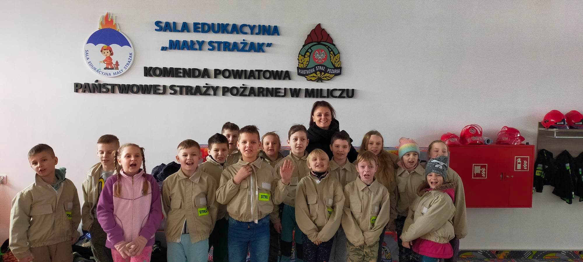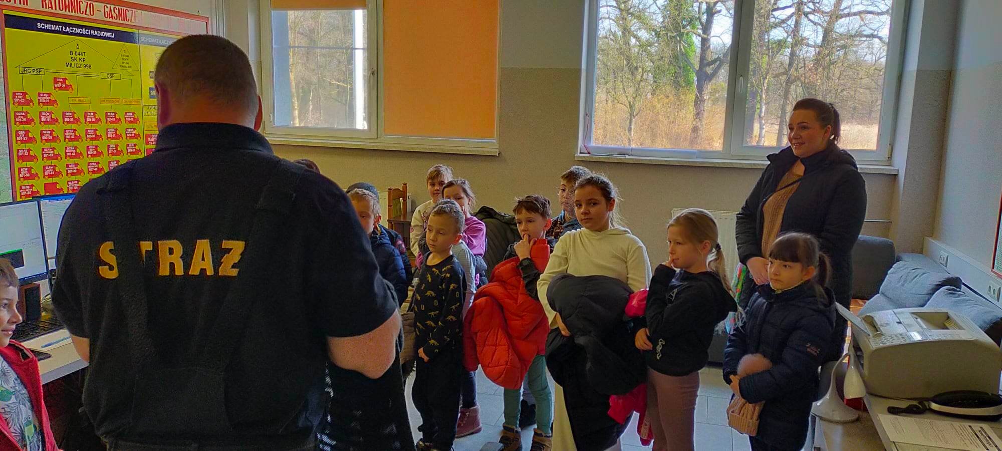 Dzieci miały okazję zapoznać się z pracą dyżurnego na Stanowisku Kierowania Komendanta Powiatowego Państwowej Straży Pożarnej w Miliczu, przypomniały sobie nr alarmowy i zasady prawidłowego zgłoszenia.
