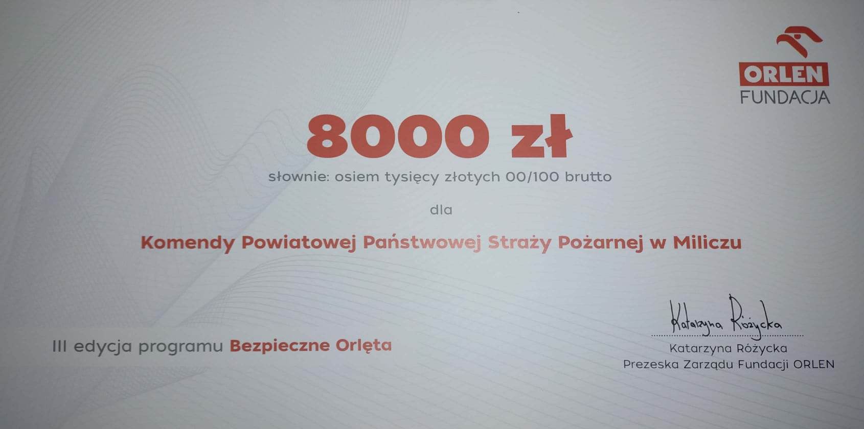 KOMENDA POWIATOWA PSP W MILICZU LAUREATEM KONKURSU FUNDACJI ORLEN