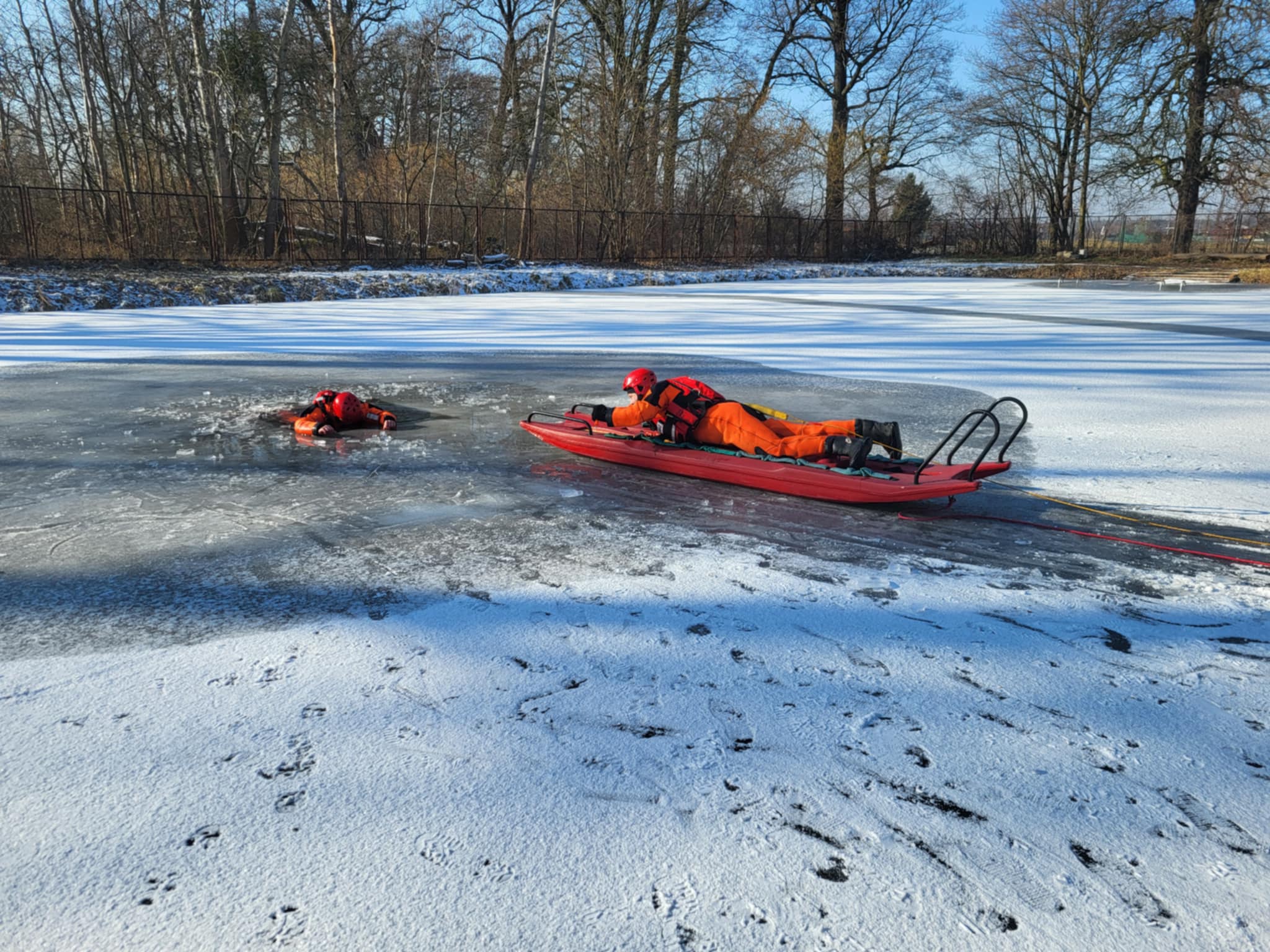 W ostatnich dniach, w związku z ujemnymi temperaturami na zewnątrz oraz obecną pokrywą lodu na zbiornikach wodnych, funkcjonariusze z Jednostki Ratowniczo-Gaśniczej PSP w Miliczu jak co roku, doskonalili techniki z zakresu ratownictwa lodowego, w tym także z ewakuacji osób poszkodowanych pod którymi załamał się lód.