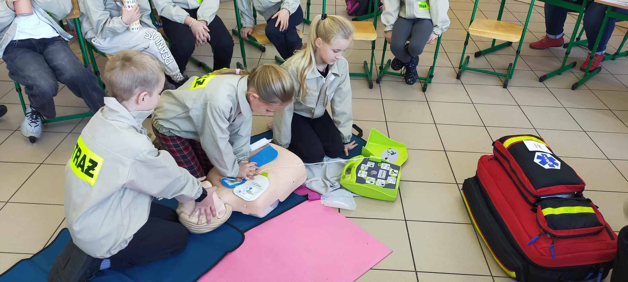 Dzieci poznały terminy takie jak RKO czyli resuscytacja krążeniowo-oddechowa oraz AED czyli automatyczny defibrylator, który jest urządzeniem wspierającym resuscytację krążeniowo-oddechową i umożliwia przeprowadzenie defibrylacji przez dowolną osobę, nawet tę nieposiadającą wykształcenia medycznego i przeszkolenia.