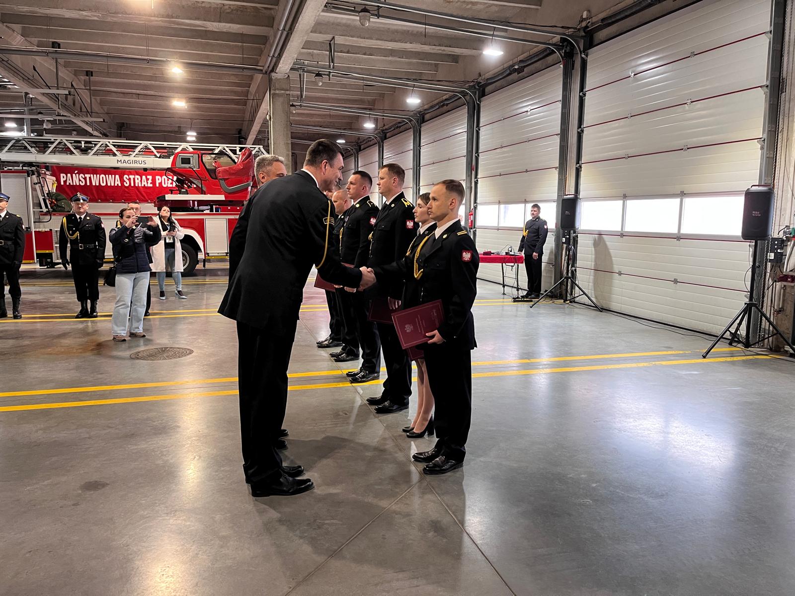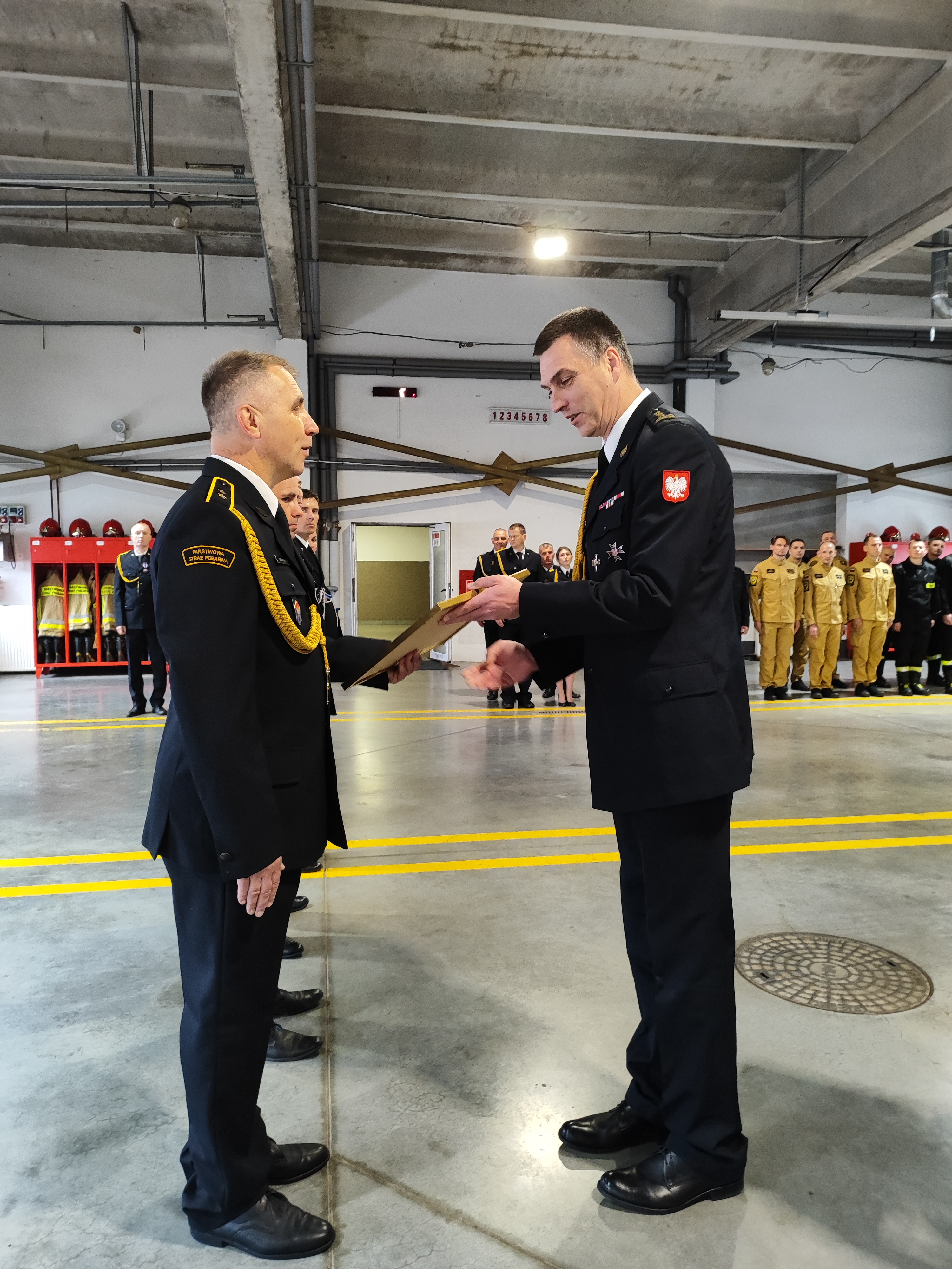 W dalszej części uroczystości nastąpiło wręczenie odznaczeń oraz awansów na wyższe stopnie służbowe z rąk st. bryg. Andrzeja Fischera oraz bryg. Piotra Kłonowskiego.
