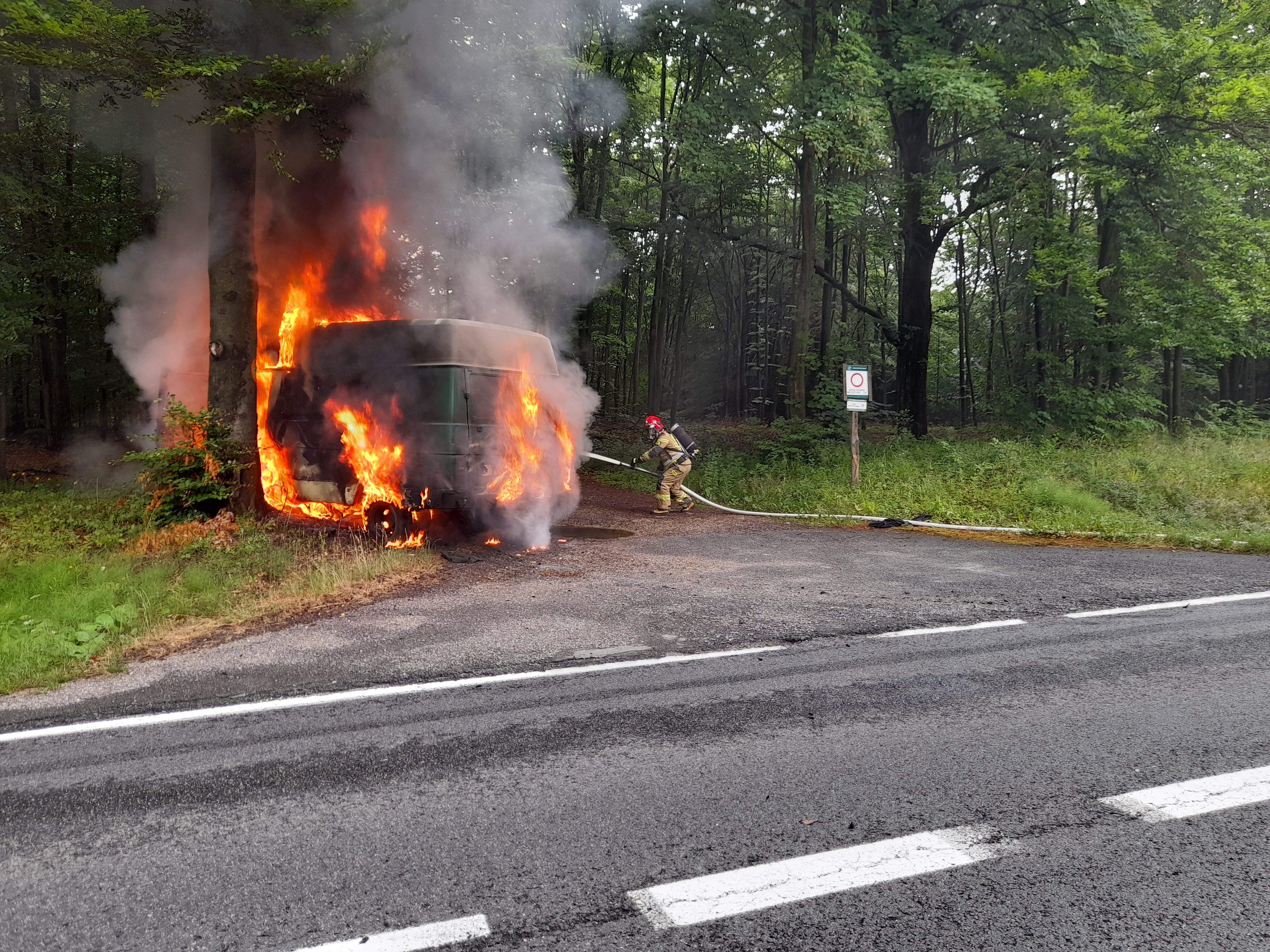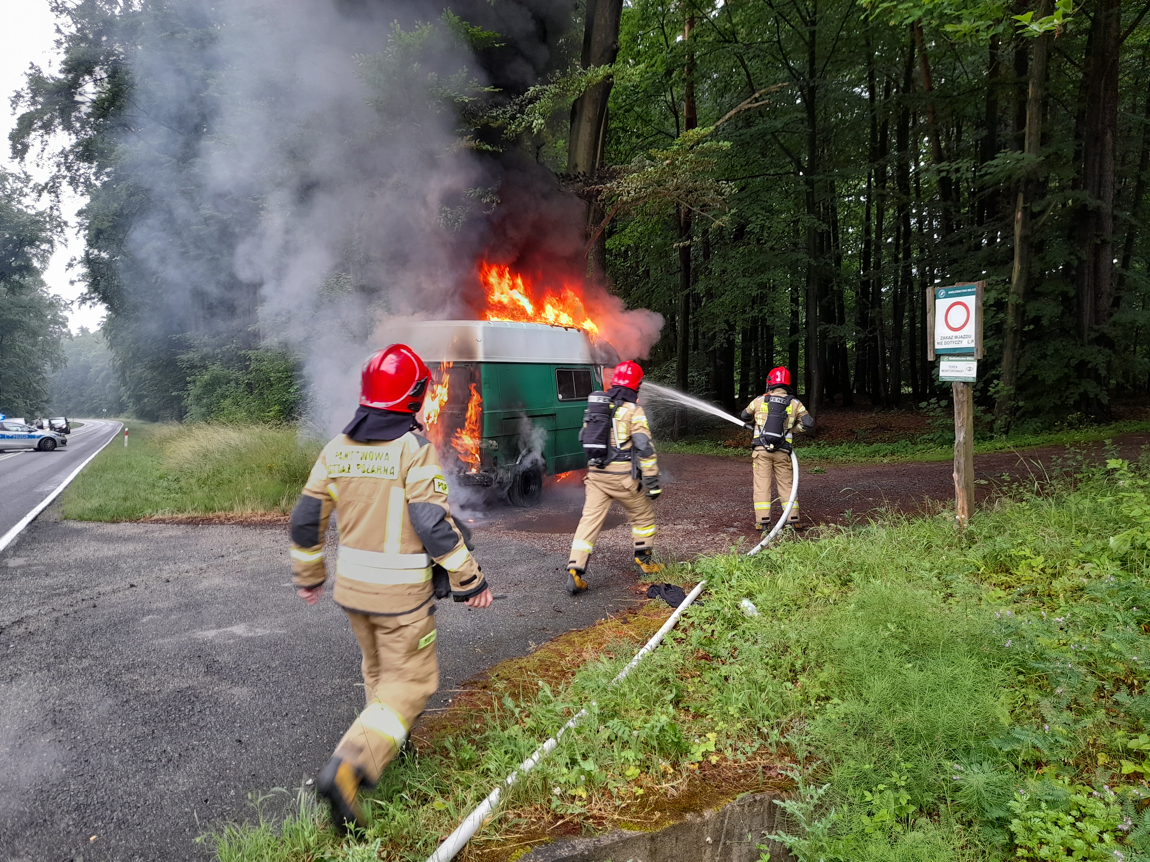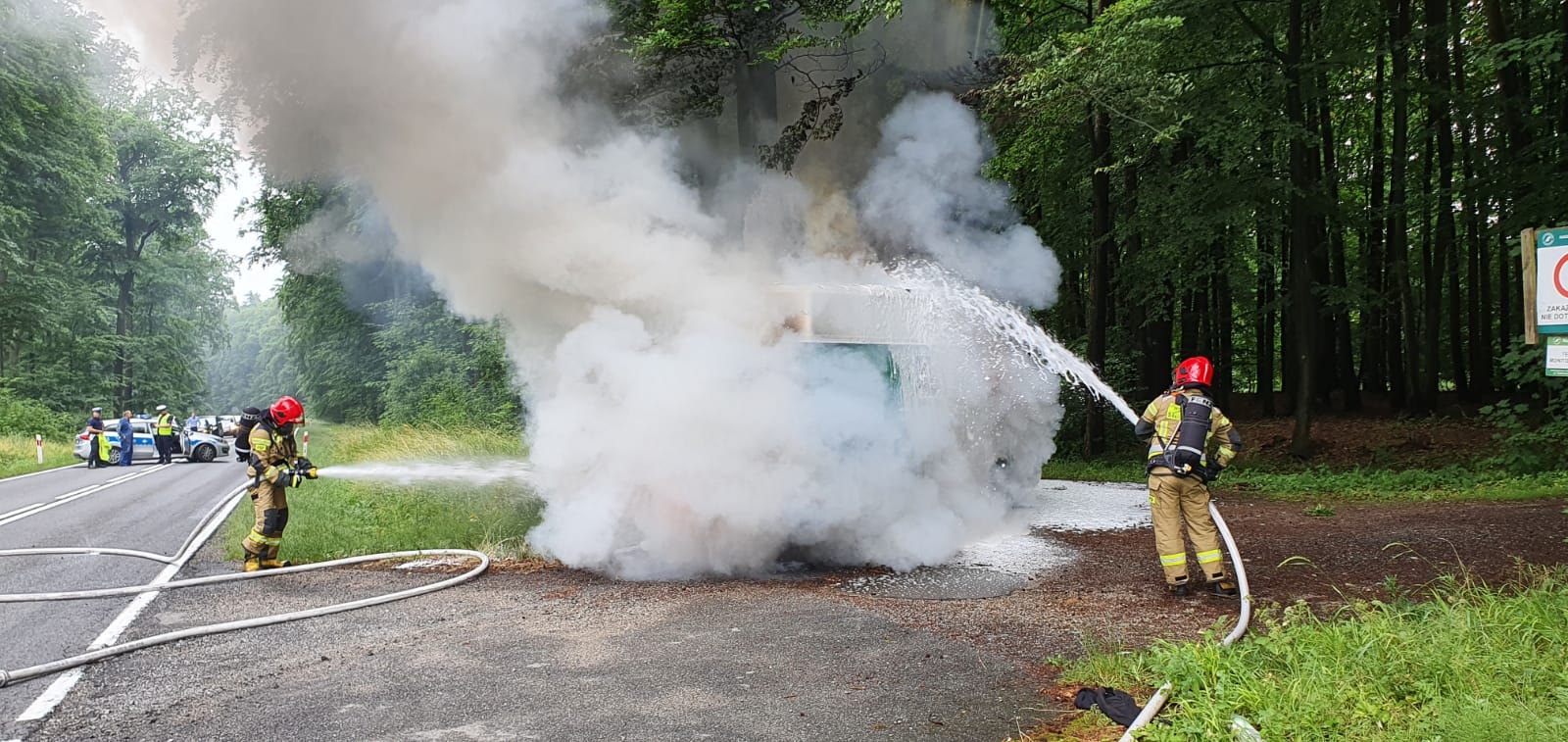 W dniu dzisiejszym Dyżurny Stanowiska Kierowania Komendanta Powiatowego w Miliczu otrzymał zgłoszenie o pożarze samochodu osobowego. Na miejscu okazało się, że podczas jazdy ładunek wieziony na busie uległ zapaleniu a kierowca zjechał na pobocze i wraz z osobami postronnymi próbował ugasić pożar gaśnicami podręcznymi. Policja wstrzymała ruch na drodze w obu kierunkach a ratownicy z PSP podali dwa prądy piany w natarciu. Na szczęście żadna z osób jadących samochodem nie została poszkodowana. Poniżej zdjęcia z miejsca prowadzonych działań.