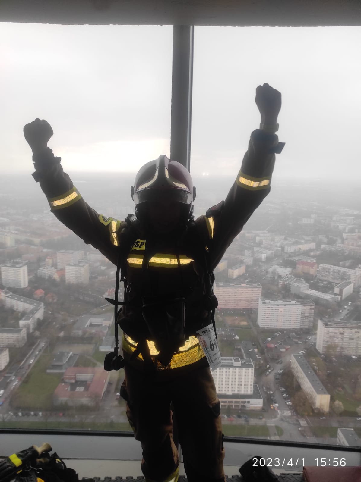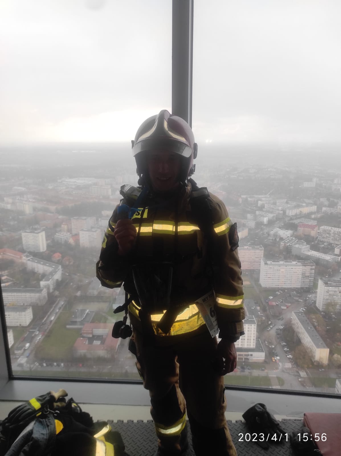 Naszego funkcjonariusza od większej reszty przeciwników odróżnił także jeden „mały szczegół”, asp. Jędrzej Kaczmarek, prócz samego wbiegnięcia na metę w pełnym ekwipunku strażackim, wystartował także w konkurencji, gdzie biegł po schodach wieżowca, jednak tym razem bez ubrania specjalnego zajmując 21 miejsce z czasem 07:57, także w kategorii M20.