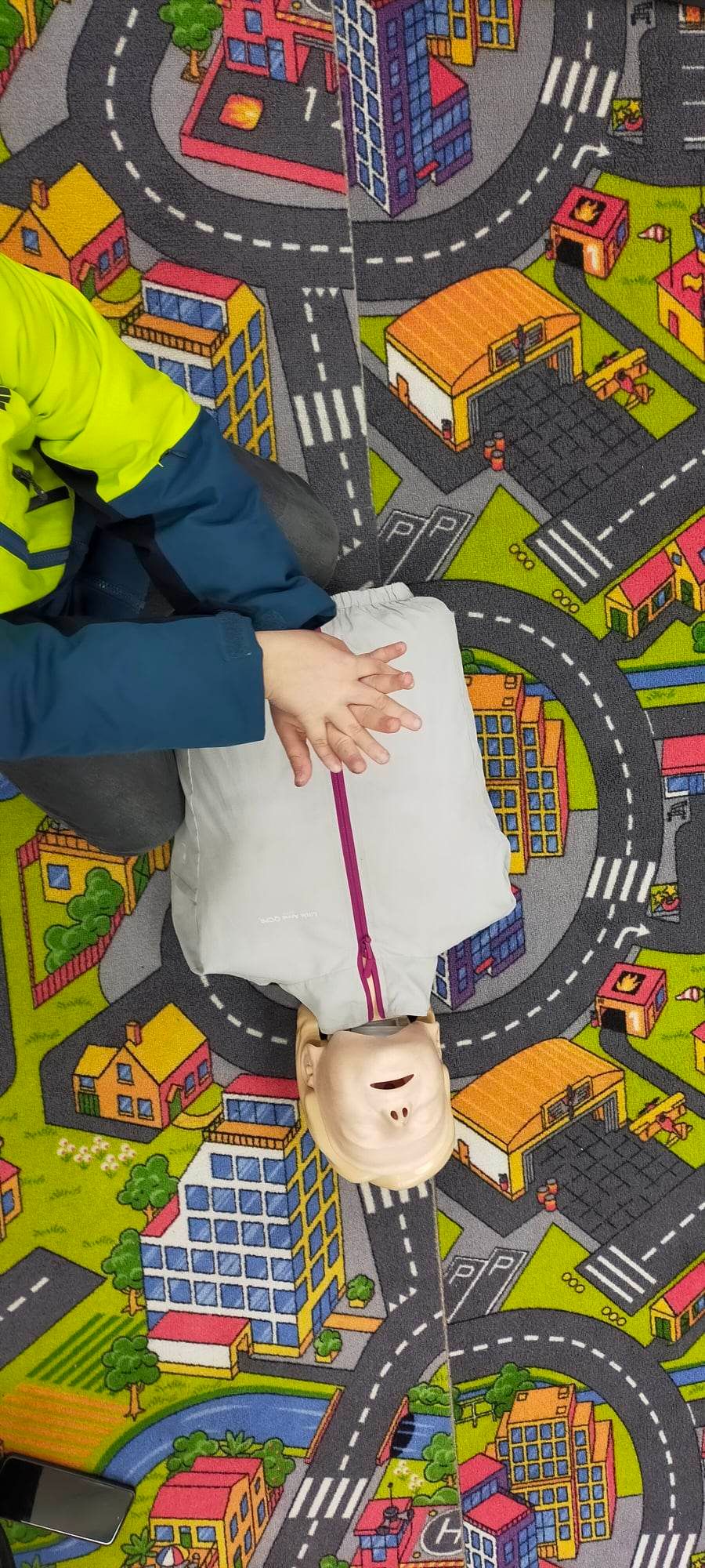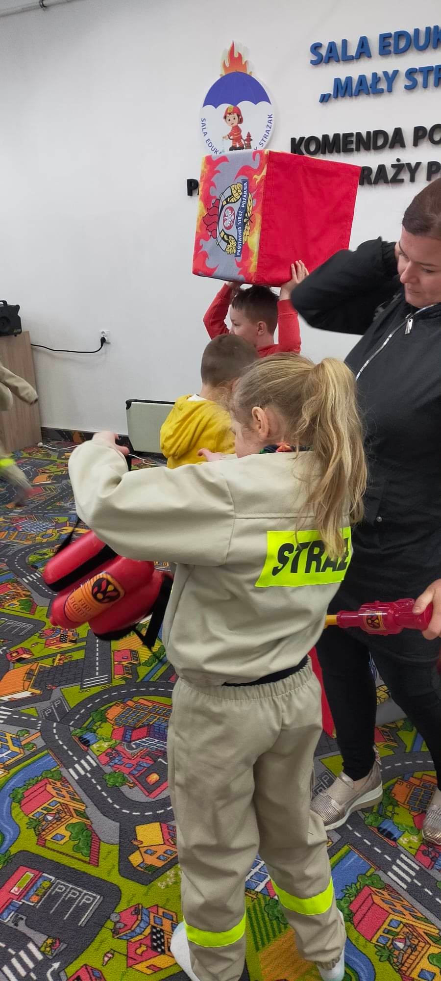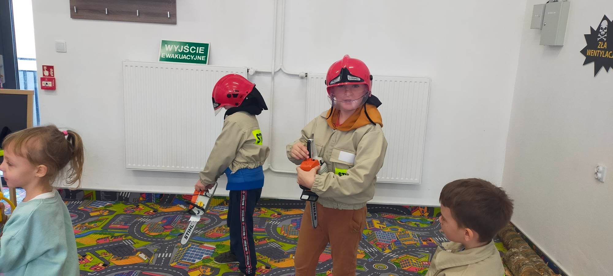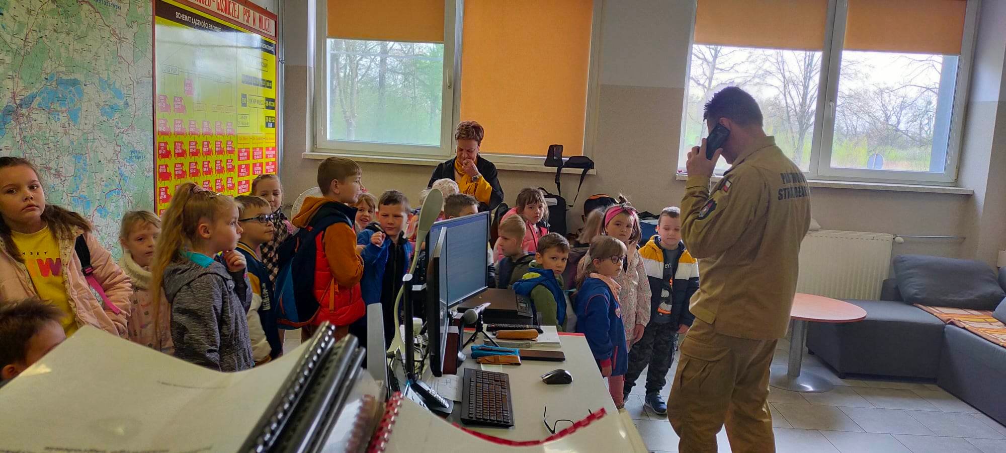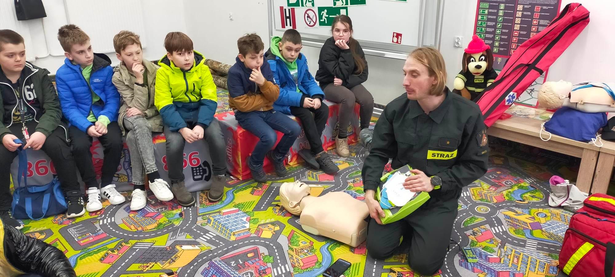 Dzieci miały okazję zapoznać się z pracą dyżurnego na Stanowisku Kierowania Komendanta Powiatowego, przypomniały sobie nr alarmowy i zasady prawidłowego zgłoszenia. Dużą atrakcją była dla nich możliwość zapoznania się z sprzętem strażackim i wyposażeniem aut ratowniczo –gaśniczych, a ubierając hełm i mundur mogły poczuć się jak prawdziwy strażak. Mali strażacy poprawnie przeszli też szkolenie z pierwszej pomocy osobie poszkodowanej, przećwiczyli pozycję boczną bezpieczną i zasady RKO. Młodzież doskonale poradziła sobie z obsługą AED oraz zastosowaniem chwytu Heimlicha.