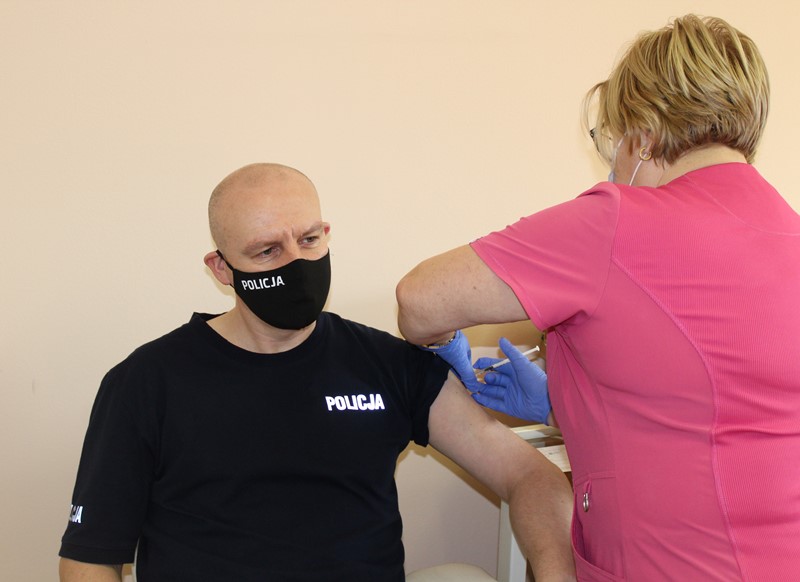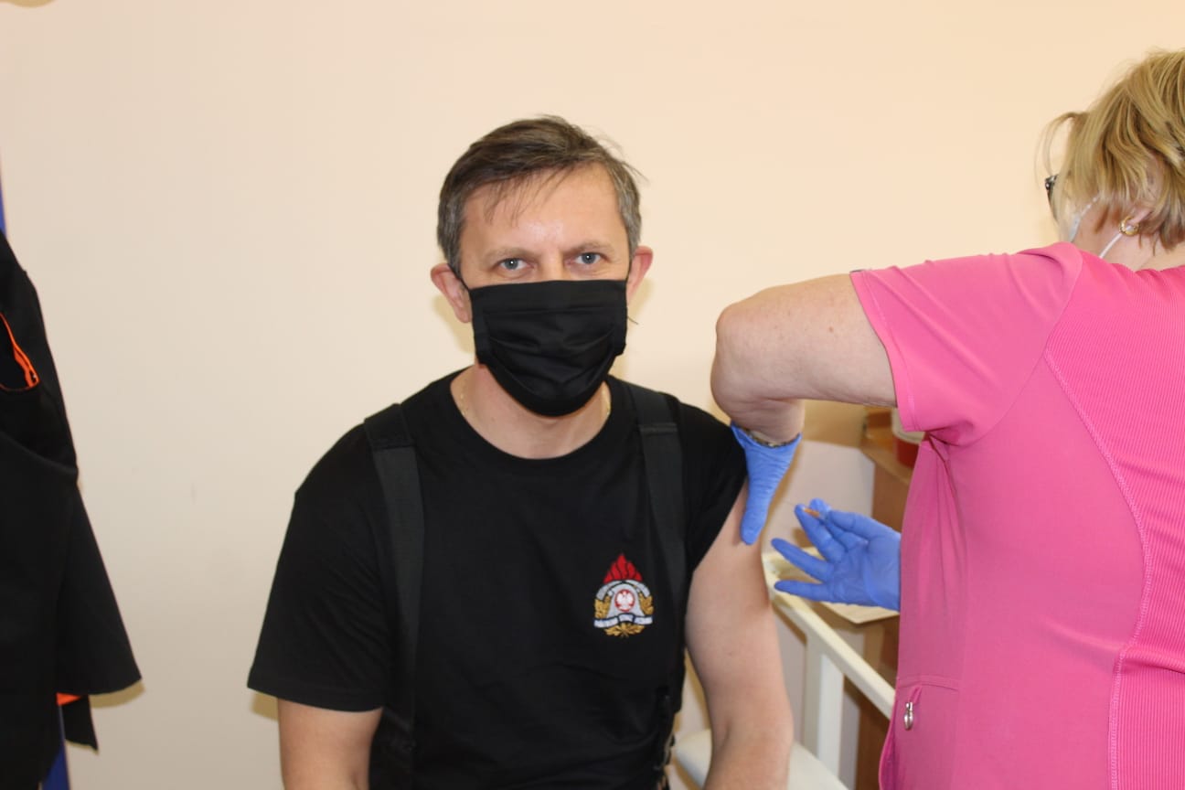 W dniu dzisiejszym rozpoczęły się szczepienia dla Strażaków Państwowej Straży Pożarnej. Pierwsze osoby z tutejszej komendy już odbyły szczepienia w tym Komendant Powiatowy mł. bryg. Tomasz Kopeć oraz Zastępca Komendanta Powiatowego mł. bryg. Grzegorz Zmaczyński, nie zabrakło również Policji, a jako pierwszy z Policjantów przykład dał Komendant Powiatowy podinspektor Marek Sroczyński.