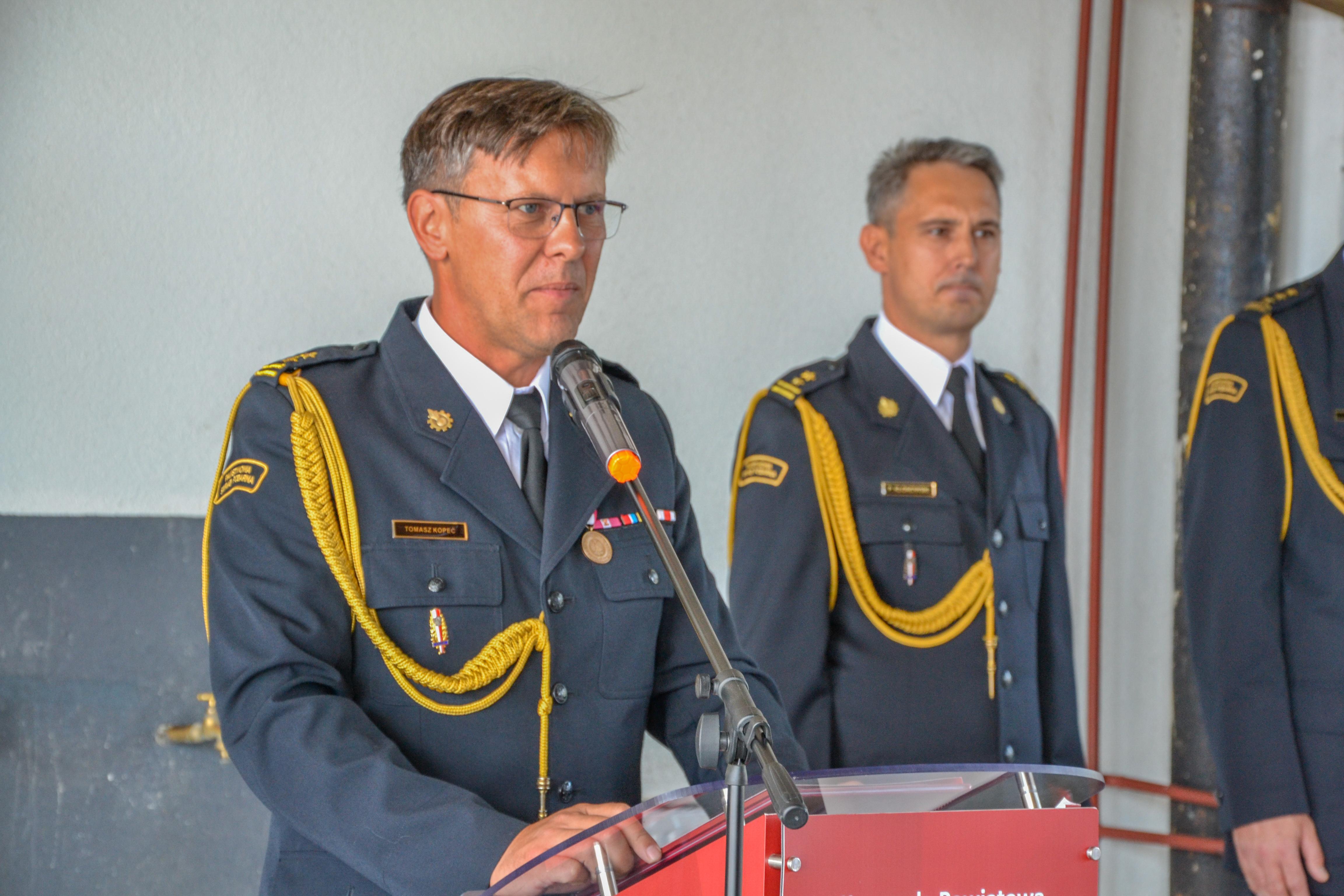 W uroczystości uczestniczył Zastępca Dolnośląskiego Komendanta Wojewódzkiego Państwowej Straży Pożarnej we Wrocławiu - st.bryg. Andrzej Fischer wraz z Naczelnikiem Wydziału Kadr w KW PSP we Wrocławiu - st. kpt. Przemysławem Wróblem.