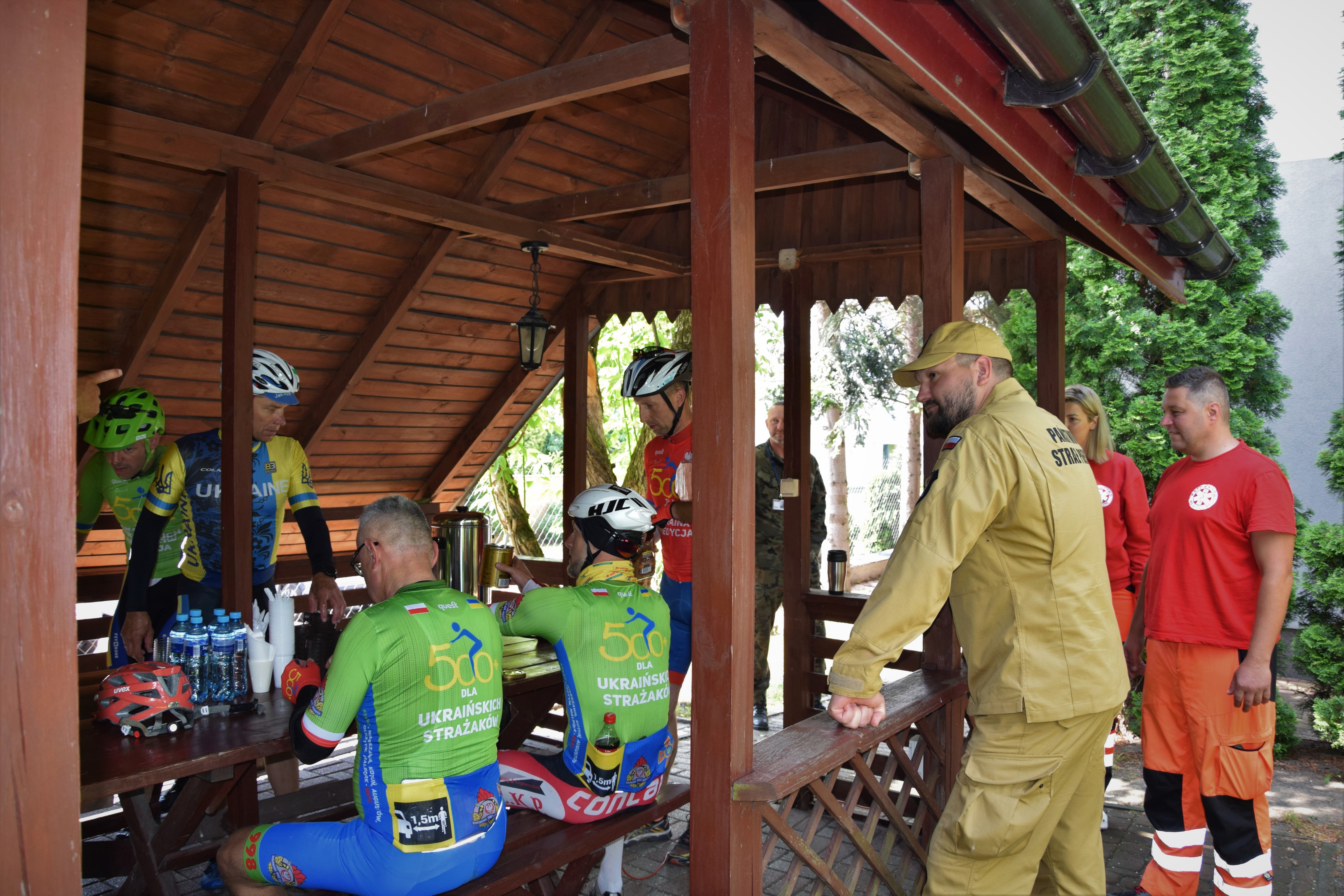 Komenda Powiatowa PSP w Mińsku Mazowieckim była pierwszym przystankiem dla kolarzy, kiedy mogli odsapnąć kilka minut, a także skorzystać z przygotowanych dla nich wcześniej ciepłych i zimnych napoi.