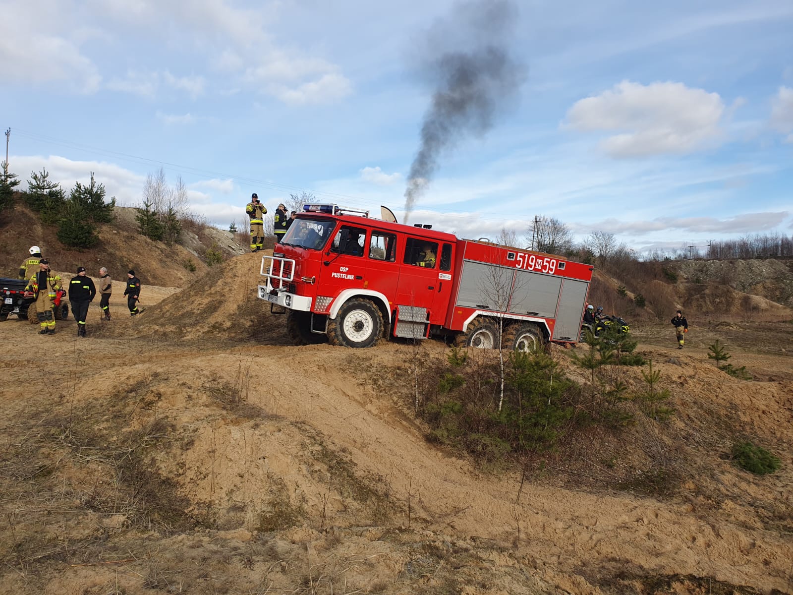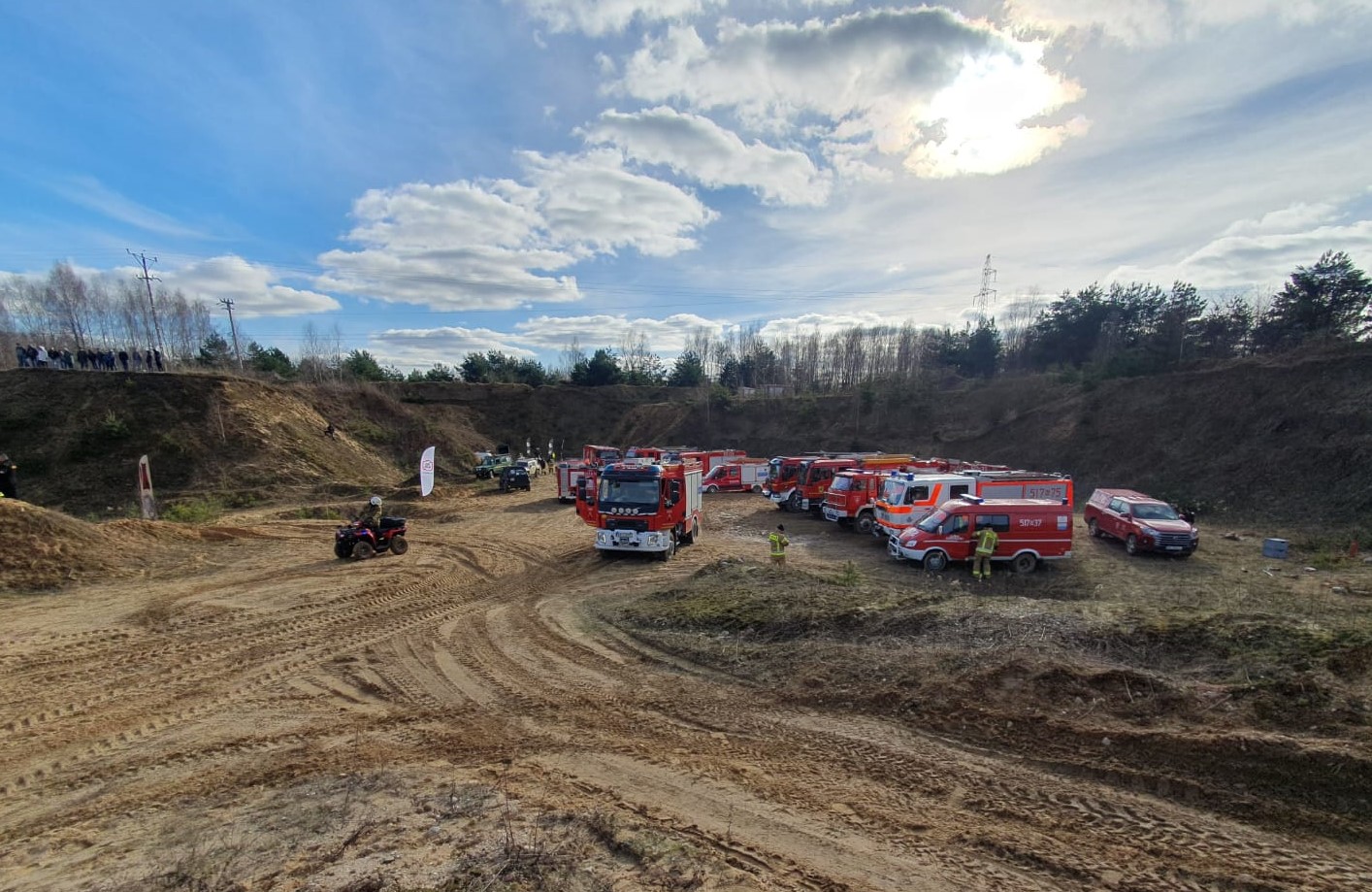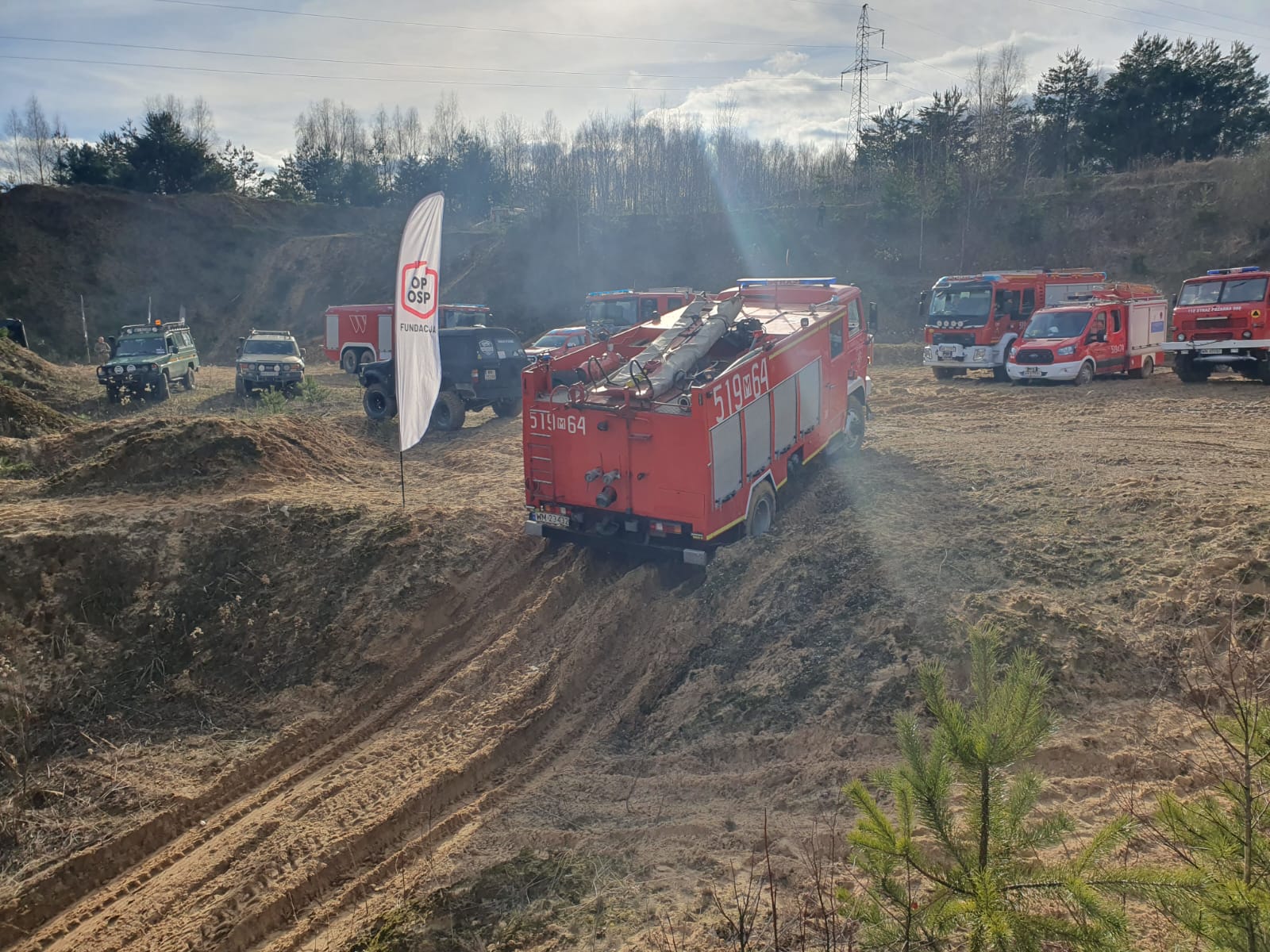 Po przeprowadzeniu instruktarzu i omówieniu zasad bezpieczeństwa strażacy przenieśli się do miejscowości Kruki, gdzie na terenie dawnej kopalni kruszywa odbyły się ćwiczenia praktyczne z jazdy samochodami pożarniczymi w trudnym terenie.