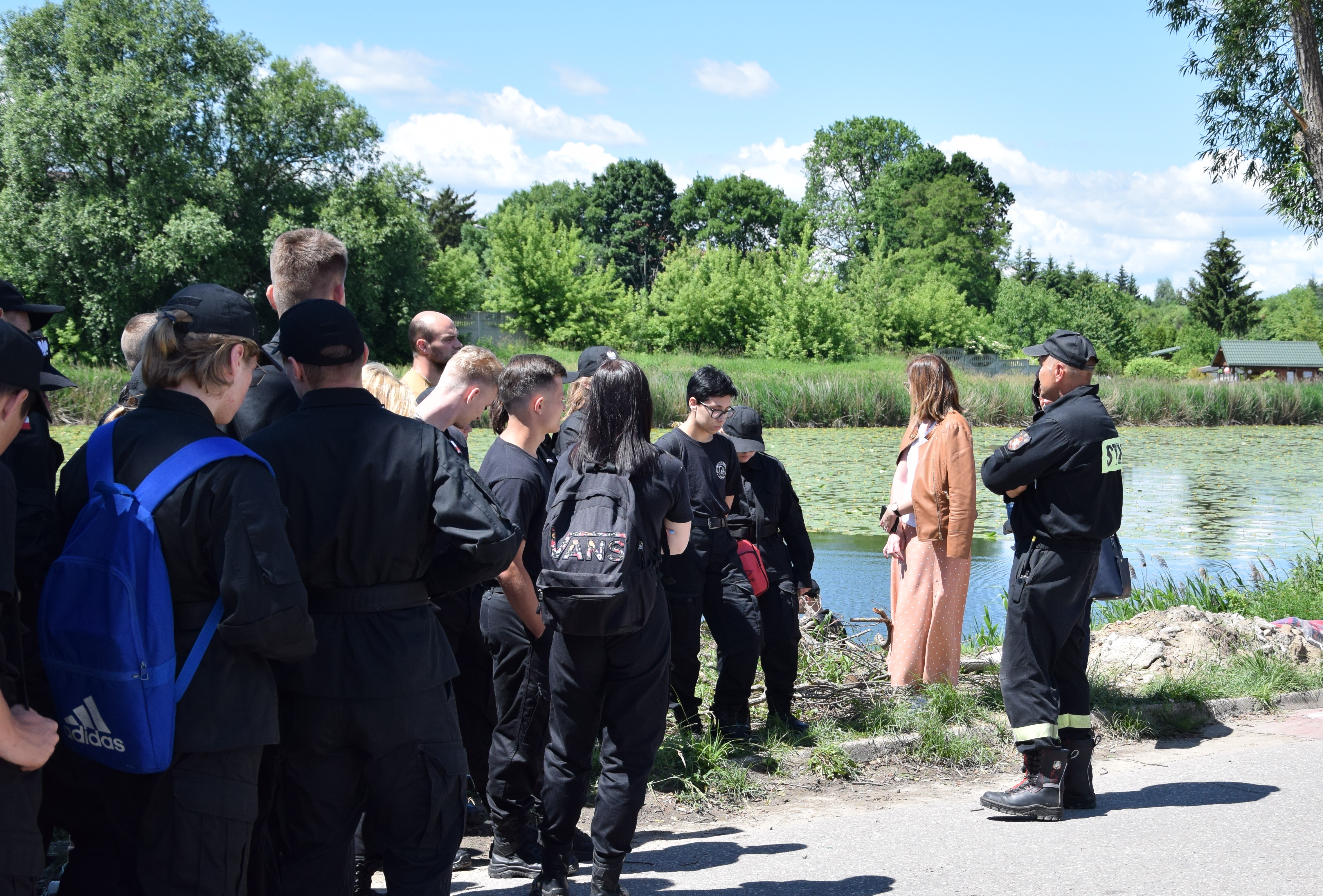 Dodatkowo podczas ćwiczeń obecni byli uczniowie klas podstawowych oraz ponadpodstawowych mińskich szkół, którzy zostali poinstruowani oraz mogli obserwować jak prawidłowo pomóc osobie poszkodowanej znajdującej się w wodzie, osobie tonącej, a także jak udzielać pierwszej pomocy.
