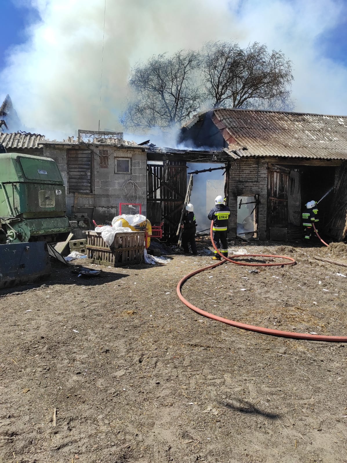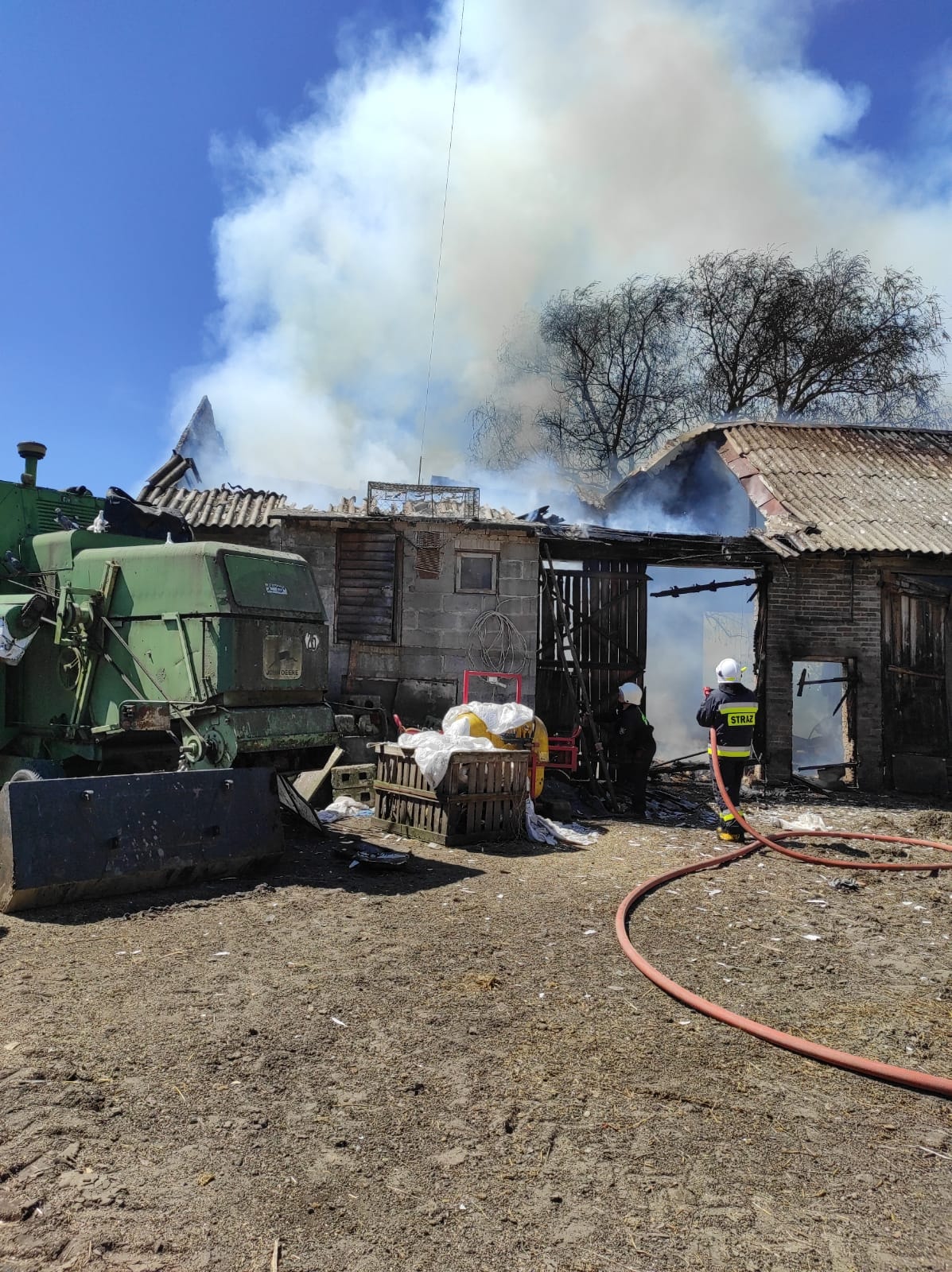 - Przed godz. 12 w dniu 13.05.2021 r. w Czarnocinie (gm. Dobre) miał miejsce pożar budynku inwentarskiego w którym znajdowały się zwierzęta. W chwili przybycia pierwszych zastępów straży pożarnych pożar był już w pełni rozwinięty i zagrażał sąsiedniemu budynkowi gospodarczemu. Działania strażaków polegały na prowadzeniu działań gaśniczych w natarciu na pożar oraz działań w obronie zagrożonego budynku. Po pół godzinie działań pożar udało się opanować i przystąpiono do jego dogaszania poprzez wykonywanie prac rozbiórkowych w celu dotarcia do zarzewi ognia. W wyniku pożaru całkowitemu spaleniu uległ budynek gospodarczy wraz ze zgromadzonymi płodami rolnymi oraz 2 szt. bydła. Strażakom udało się uratować sąsiednie zabudowania. W działaniach ratowniczych trwających prawie 4 godziny brał udział 1 zastęp i 5 ratowników PSP, 4 zastępy i 17 ratowników OSP oraz policja.