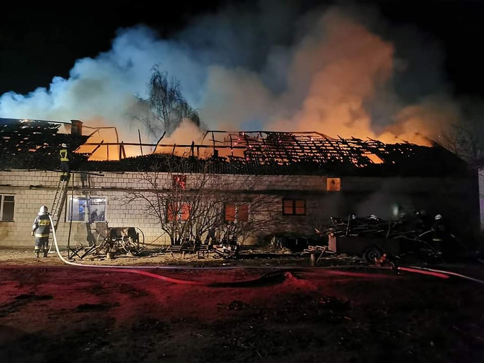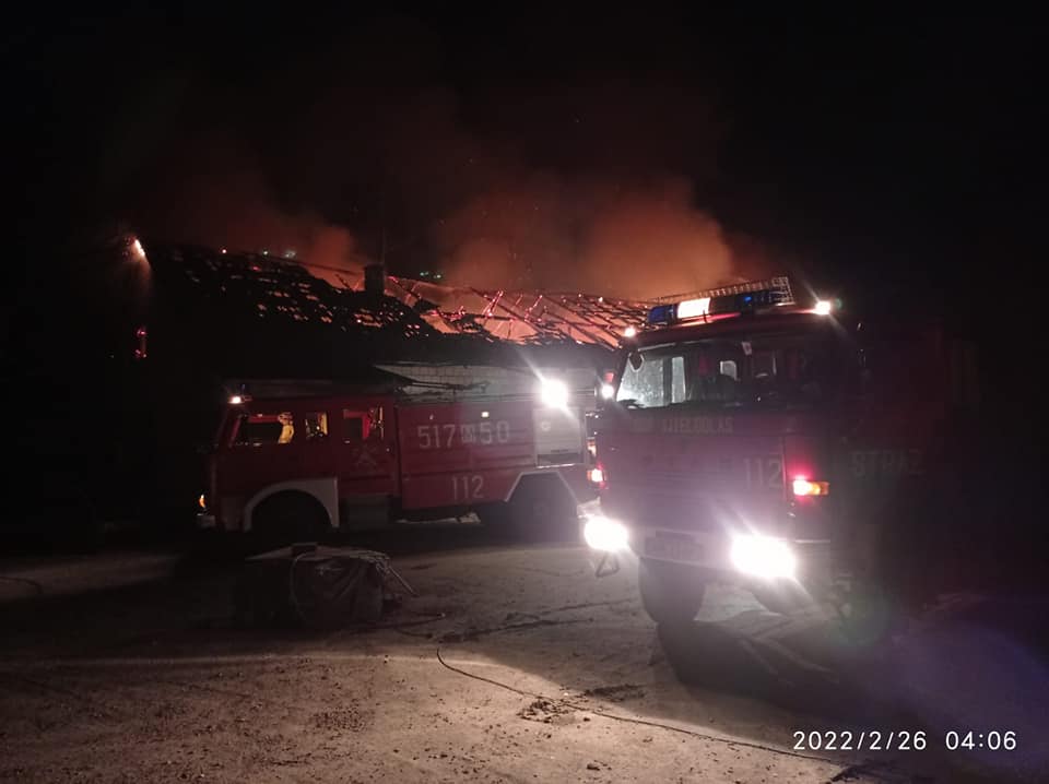 - Po godz. 3 dnia 26.02.2022 r. w Budach Wielgoleskich doszło do pożaru obory. Po przyjeździe na miejsce strażaków okazało się, że pożar jest już w pełni rozwinięty i obejmuje cały obiekt we wnętrzu którego znajdują się zwierzęta (kurczaki, koń, kozy i koty). Działania strażaków polegały na zabezpieczeniu miejsca zdarzenia i prowadzeniu działań gaśniczych w natarciu na pożar. Ogień udało się opanować po niespełna 1,5 godzinie działań, a następnie przystąpiono do rozbiórki nadpalonej konstrukcji budynku i usuwania z wnętrza budynku przechowywanego tam siana oraz zniszczonego wyposażenie. W trakcie działań strażacy udzielili kwalifikowanej pierwszej pomocy mężczyźnie, który po przebadaniu przez Zespół Ratownictwa Medycznego nie został zabrany na hospitalizacje. W wyniku pożaru spaleniu uległa obora wraz z wyposażeniem oraz inwentarzem jak również wydzielone z obiekty pomieszczenia mieszkalne wraz z wyposażeniem. Strażakom udało się uratować sąsiedni budynek. W działaniach gaśniczych trwających ponad 8 godzin brały udział 3 zastęp i 10 ratowników PSP, 12 zastępów i 59 ratowników OSP, pogotowie ratunkowe, policja i Pogotowie Energetyczne.
