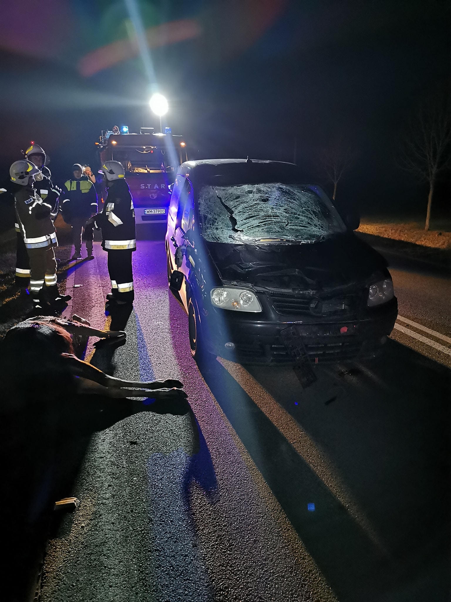 - O godz.17 w dniu 25.11.2021 r. na 55 kilometrze drogi wojewódzkiej nr 637 w miejscowości Walentów doszło do zderzenia samochodu osobowego marki VW Caddy z łosiem. Po przybyciu na miejsce strażaków okazało się, że w zdarzeniu uczestniczył tylko jeden pojazd, którym podróżowały 2 osoby. Kierowca nie odniósł żadnych obrażeń natomiast pasażerowi strażacy udzielili kwalifikowanej pierwszej pomocy i przekazali go przybyłemu na miejsce Zespołowi Ratownictwa Medycznego, który przetransportował ja do szpitala. Dalsze działania strażaków polegały na zabezpieczeniu czynności dochodzeniowych prowadzonych przez policję, a po ich zakończeniu na usunięciu z jezdni skutków zdarzenia. W działaniach ratowniczych trwających 2 godziny brał udział: 1 zastęp i 6 ratowników PSP, 2 zastępy i 12 ratowników OSP, policja oraz pogotowie ratunkowe.