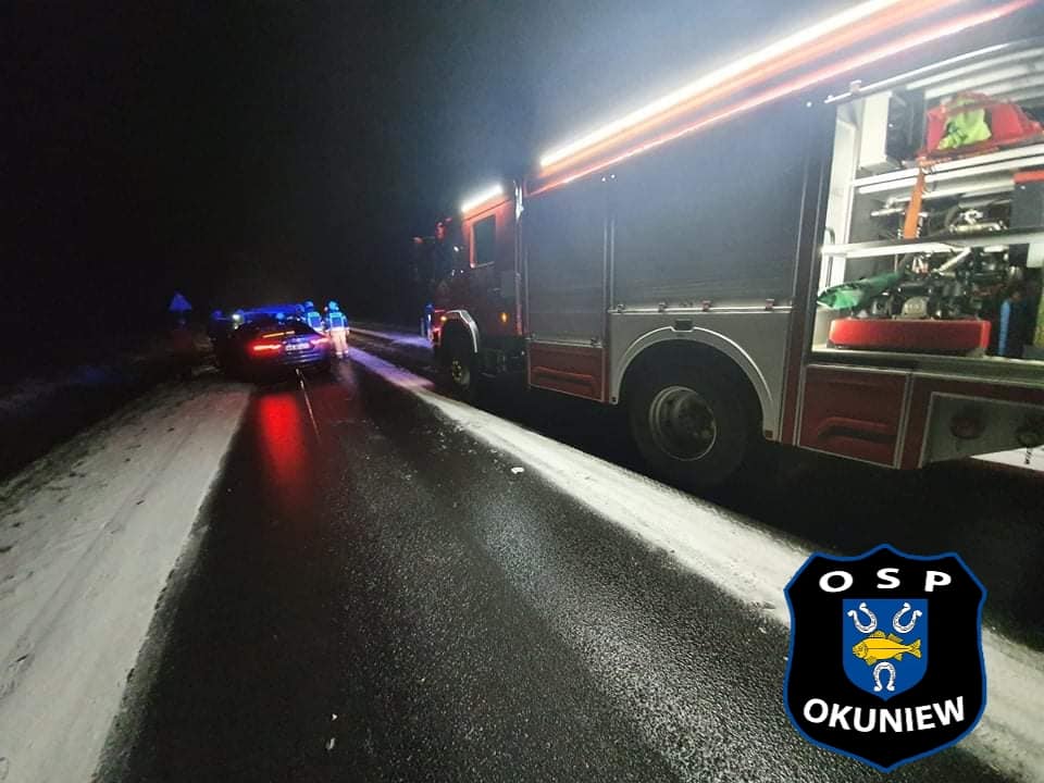 - O godz. 17 w dniu 5.12.2021 r. na 27 kilometrze drogi wojewódzkiej 637 w Okuniewie doszło do zderzenia 2 samochodów osobowych marki Jaguar i Fiat. W zdarzeniu uczestniczył również trzeci pojazd marki Nissan, który chcąc uniknąć zderzenia z pojazdami zjechał do rowu. Po przybyciu na miejsce strażaków okazało się, że wszystkie osoby podróżujące samochodami opuściły je o własnych siłach przed przybyciem na miejsce służb ratowniczych, a udzielenia pomocy medycznej wymaga tylko jedna osoba. Działania strażaków polegały na zabezpieczeniu miejsca zdarzenia, udzieleniu kwalifikowanej pierwszej pomocy osobie poszkodowanej i przekazaniu jej przybyłemu na miejsce Zespołowi Ratownictwa Medycznego. W trakcie prowadzonych działań jeszcze jeden z uczestników zdarzenia źle się poczuł i wymagał udzielenia pierwszej pomocy przez ZRM. W wyniku zdarzenia dwie osoby zostały przewiezione do szpitala. Dalsze działania strażaków polegały na zabezpieczeniu czynności dochodzeniowych prowadzonych przez policję, a po ich zakończeniu na usunięciu z jezdni skutków zdarzenia. W działaniach ratowniczych trwających ponad 3 godziny brały udział 2 zastępy i 9 ratowników PSP, 1 zastęp i 6 ratowników OSP, policja oraz pogotowie ratunkowe.