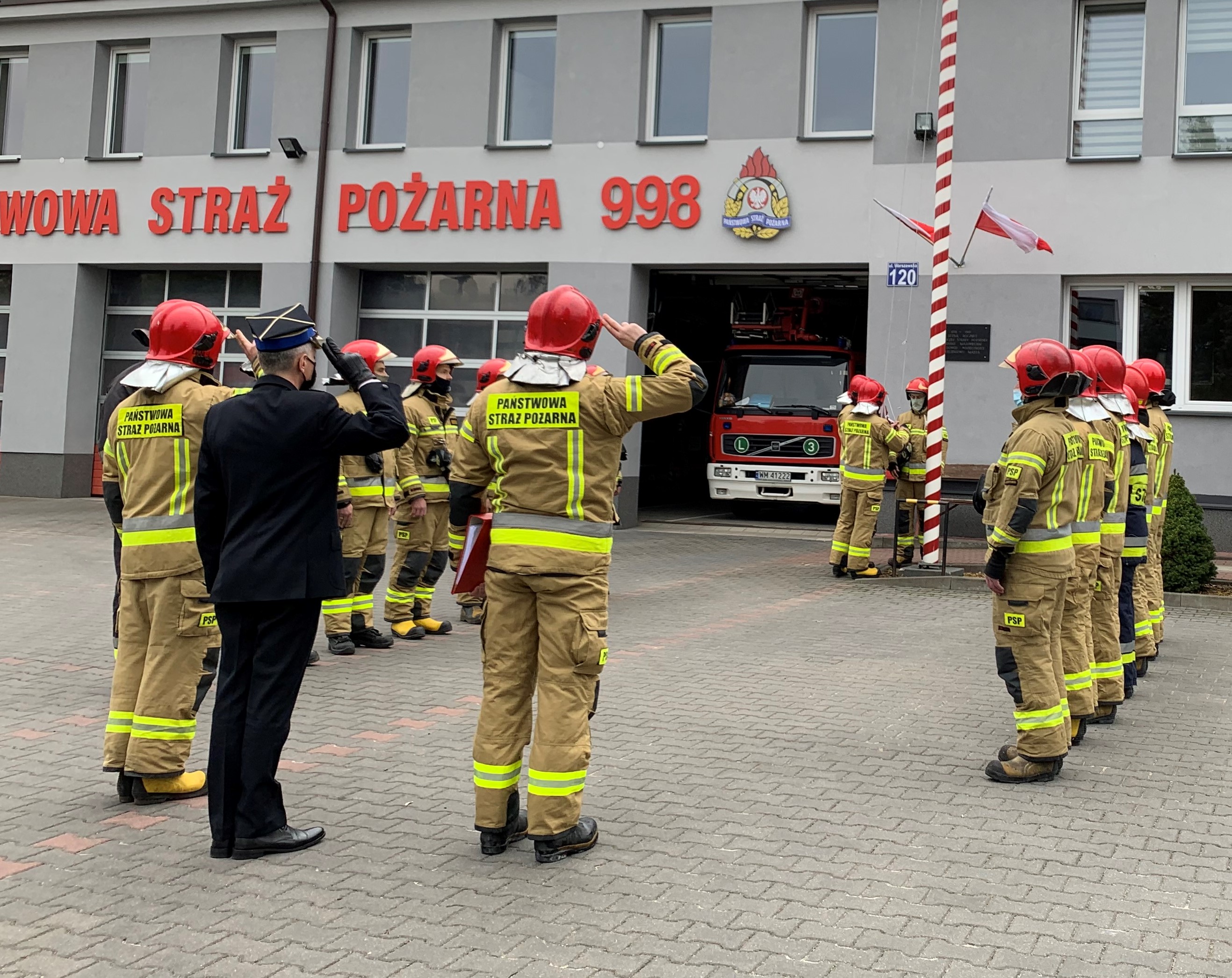 W uroczystości na terenie Komendy Powiatowej PSP w Mińsku Mazowieckim udział wziął Komendant Powiatowy Państwowej Straży Pożarnej w Mińsku Mazowieckim, bryg. Krzysztof Komorowski.