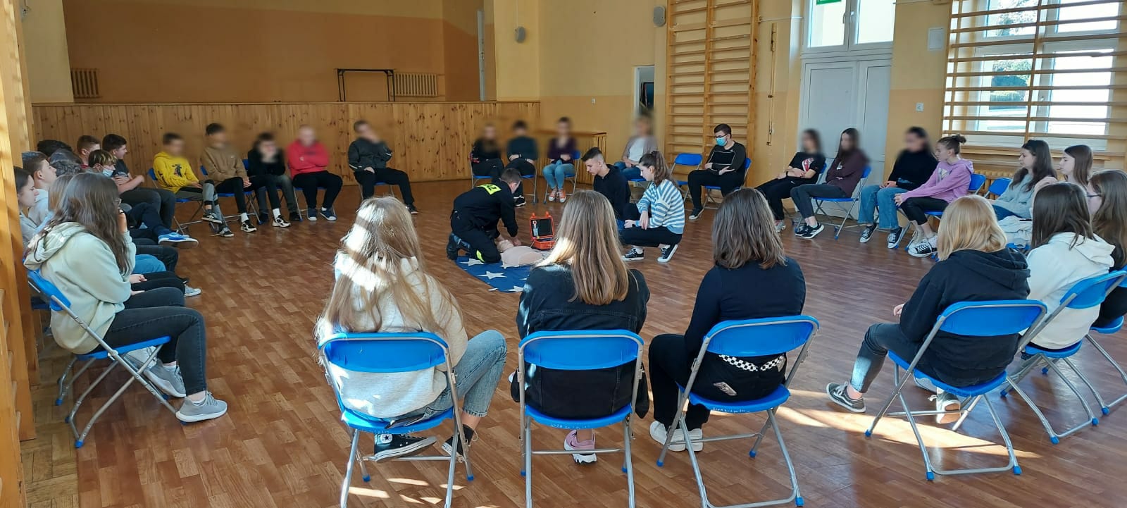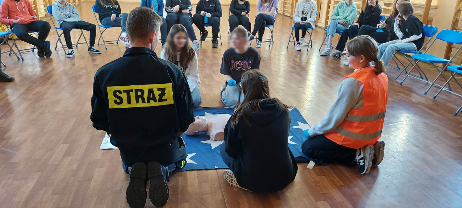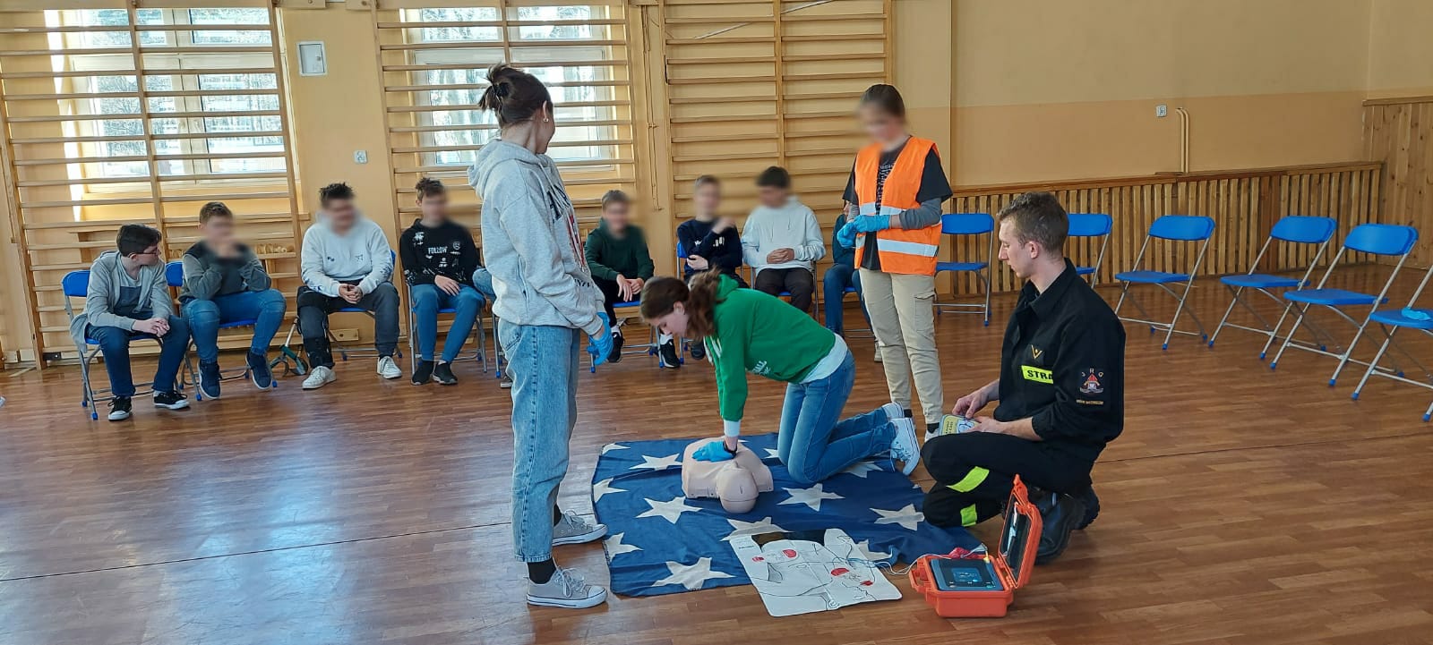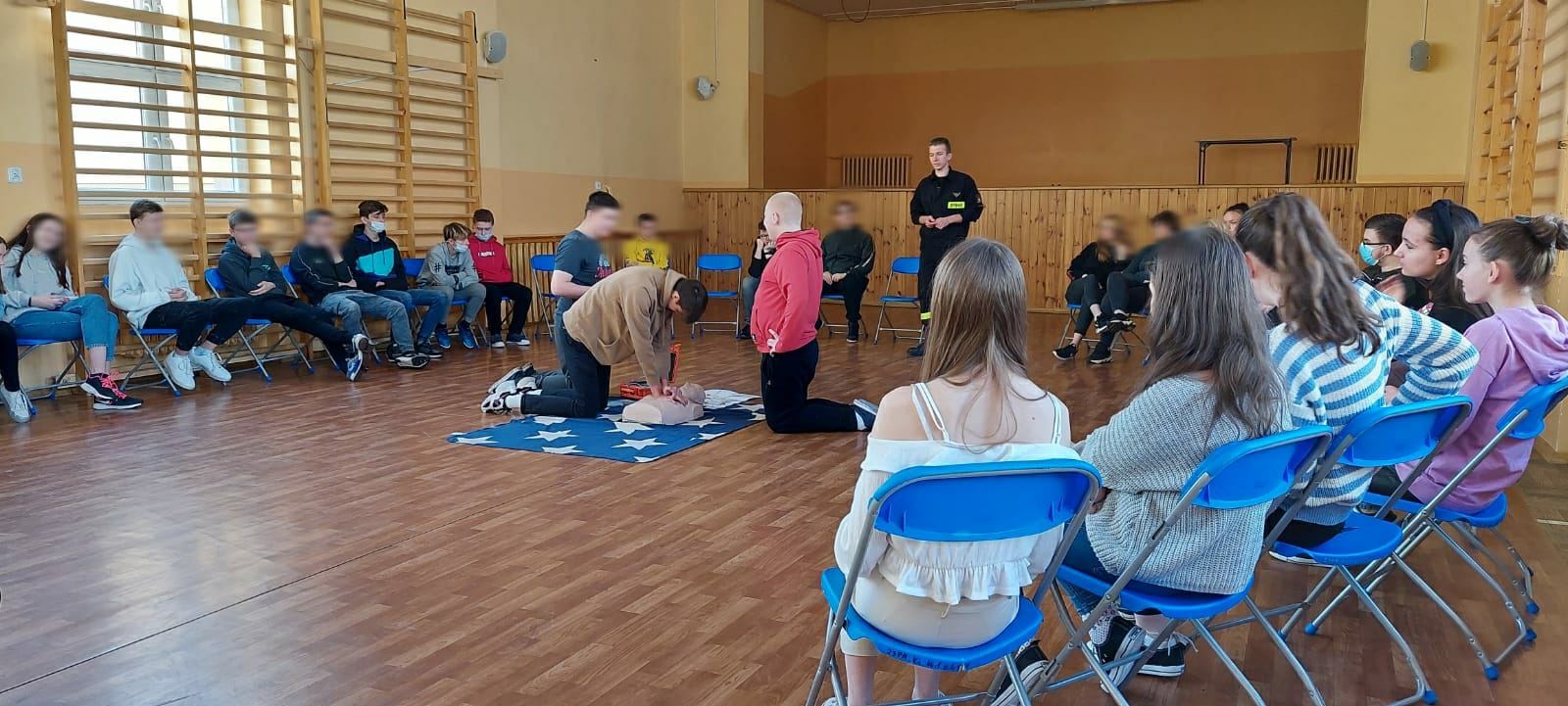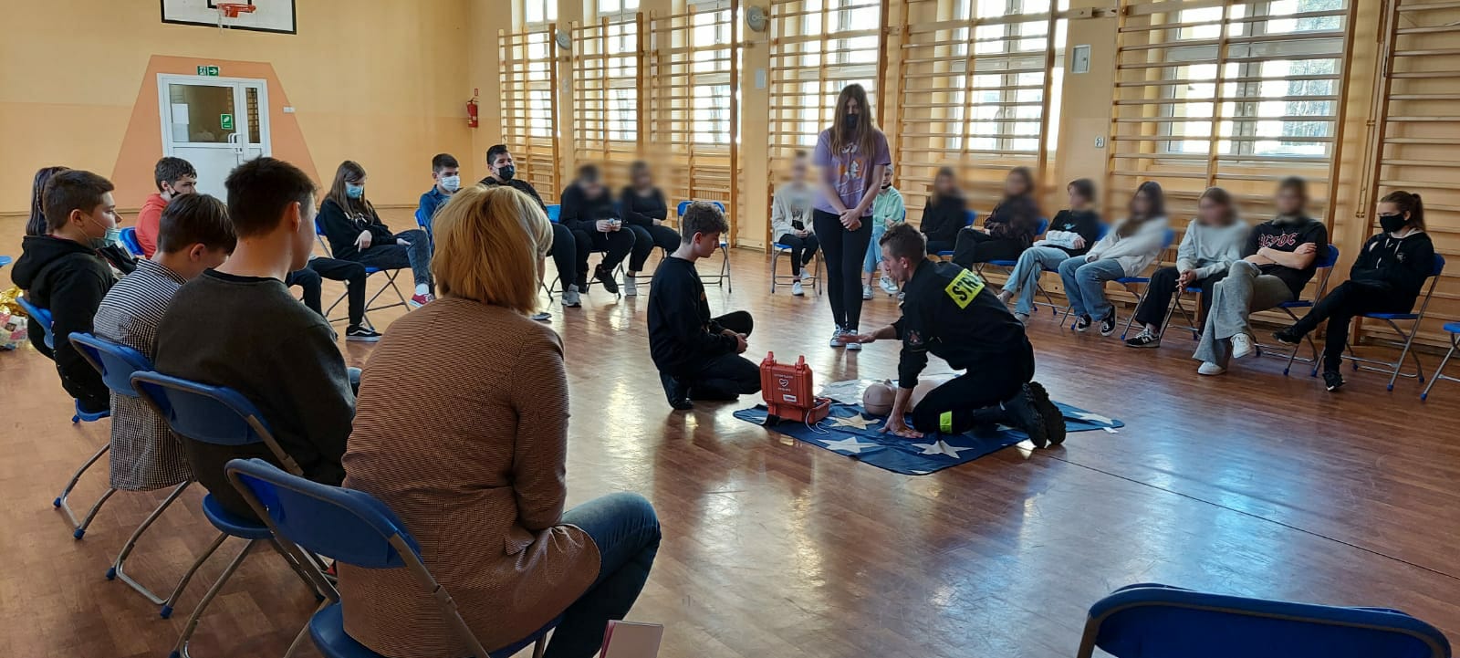 Podczas spotkania młodzież mogła zaobserwować i nauczyć się jak udzielić pierwszej pomocy, jak zadbać o własne bezpieczeństwo oraz jak prawidłowo reagować i wezwać pomoc.