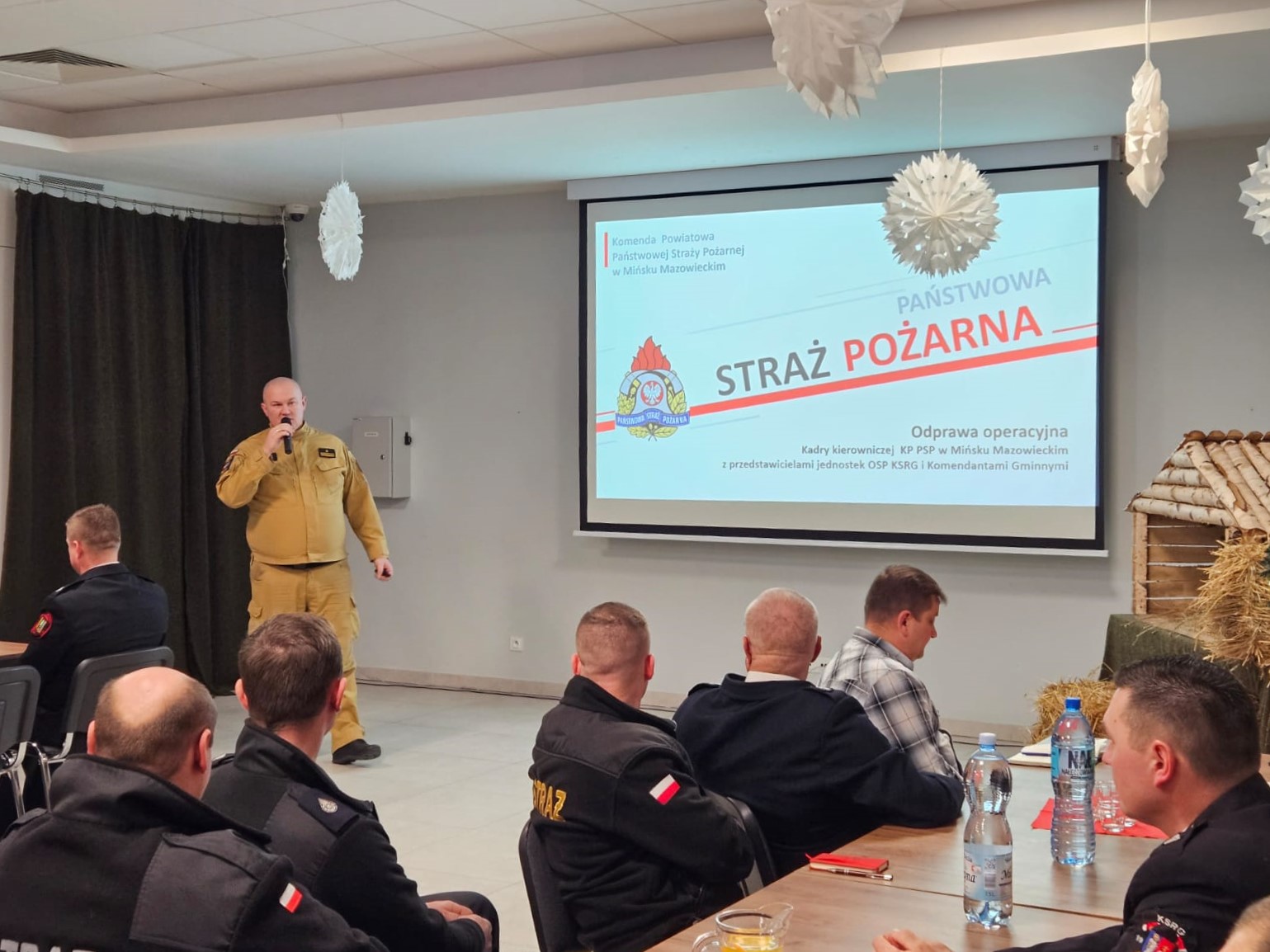 Odprawie przewodniczył mł. bryg. Tomasz Kosznik - Komendant Powiatowy PSP w Mińsku Mazowieckim, a w jej trakcie funkcjonariusze komendy poruszyli poniższe tematy: