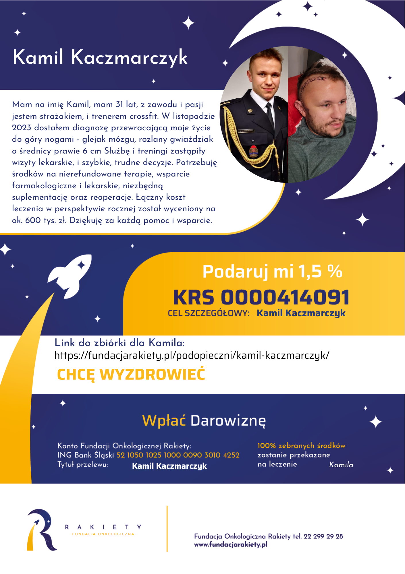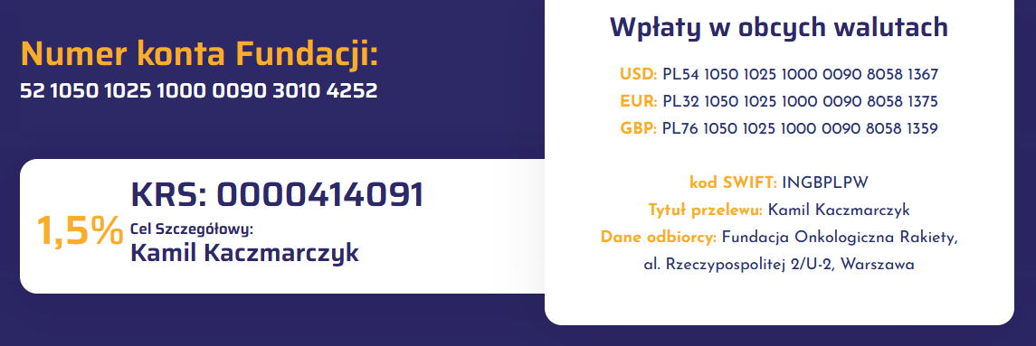 LINK DO ZBIÓRKI https://fundacjarakiety.pl/podopieczni/kamil-kaczmarczyk/