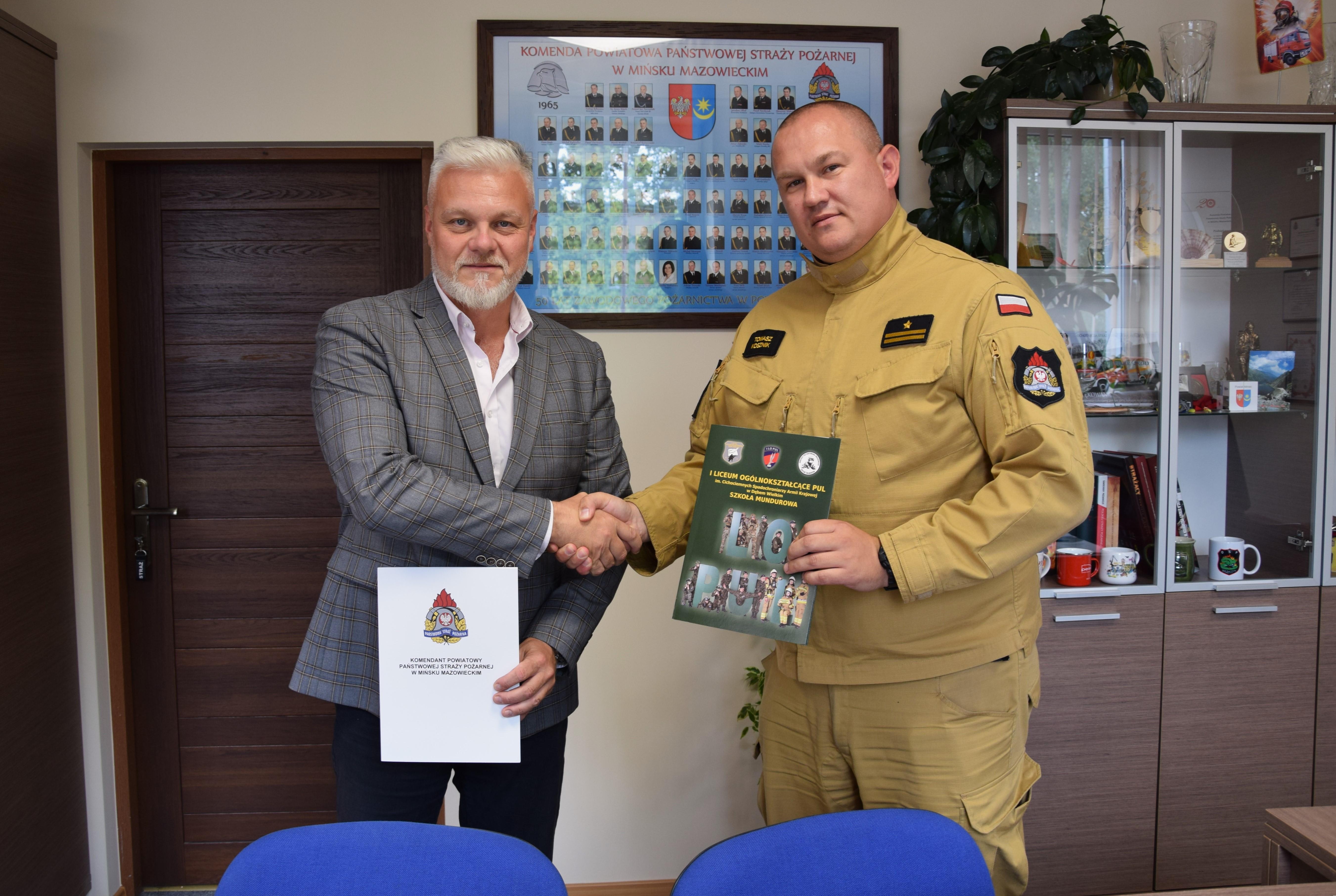 Komendant Powiatowy Państwowej Straży Pożarnej w Mińsku Mazowieckim podpisał porozumienie o współpracy z I LO PUL im. Cichociemnych Spadochroniarzy Armii Krajowej w Dębem Wielkim.