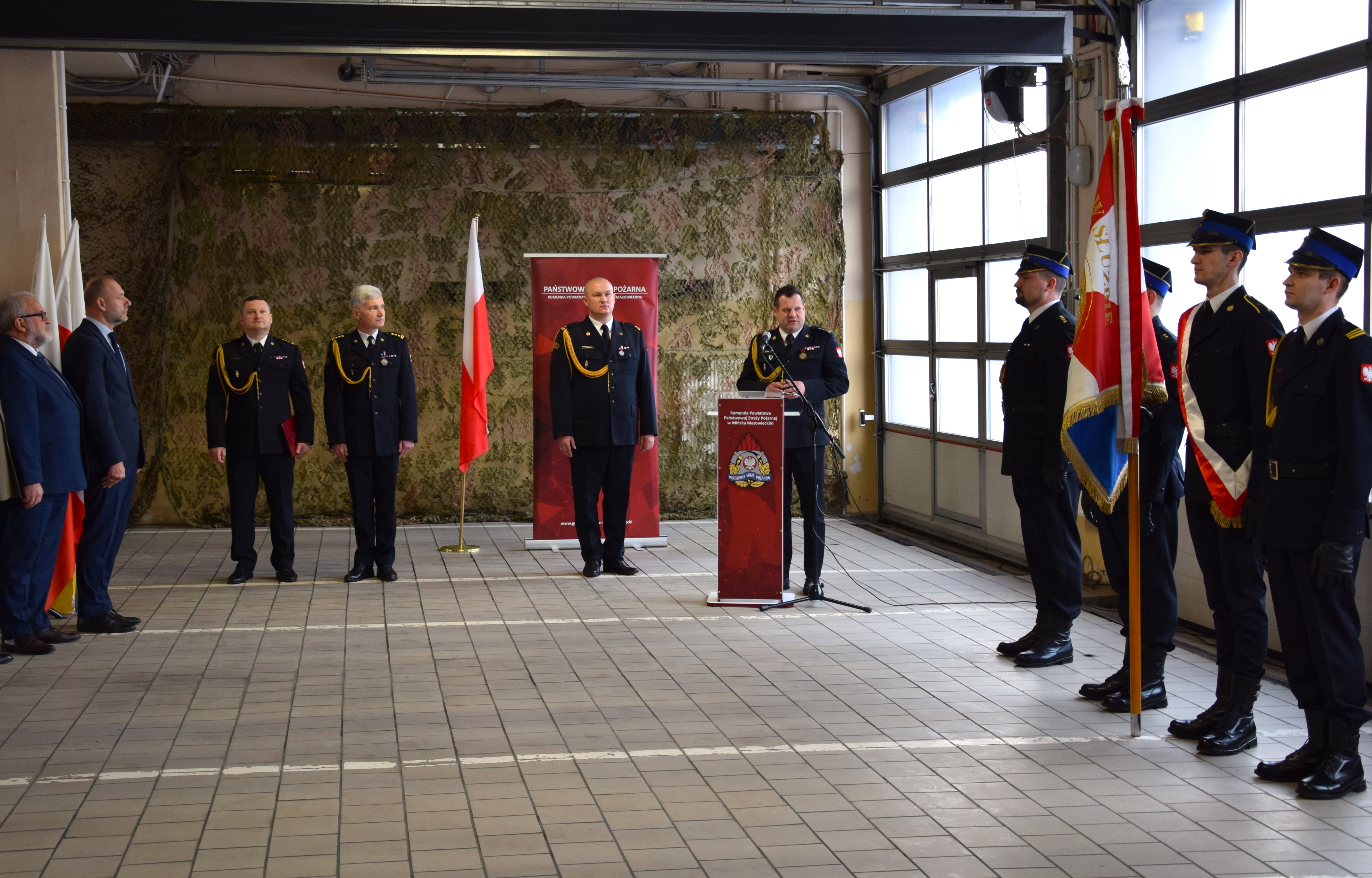 Uroczystość rozpoczęła się złożeniem meldunku przez dowódcę uroczystości, który przyjął p.o. Mazowiecki Komendant Wojewódzki PSP - st. bryg. Artur Gonera. Następnie wprowadzony został sztandar oraz odegrano hymn narodowy.