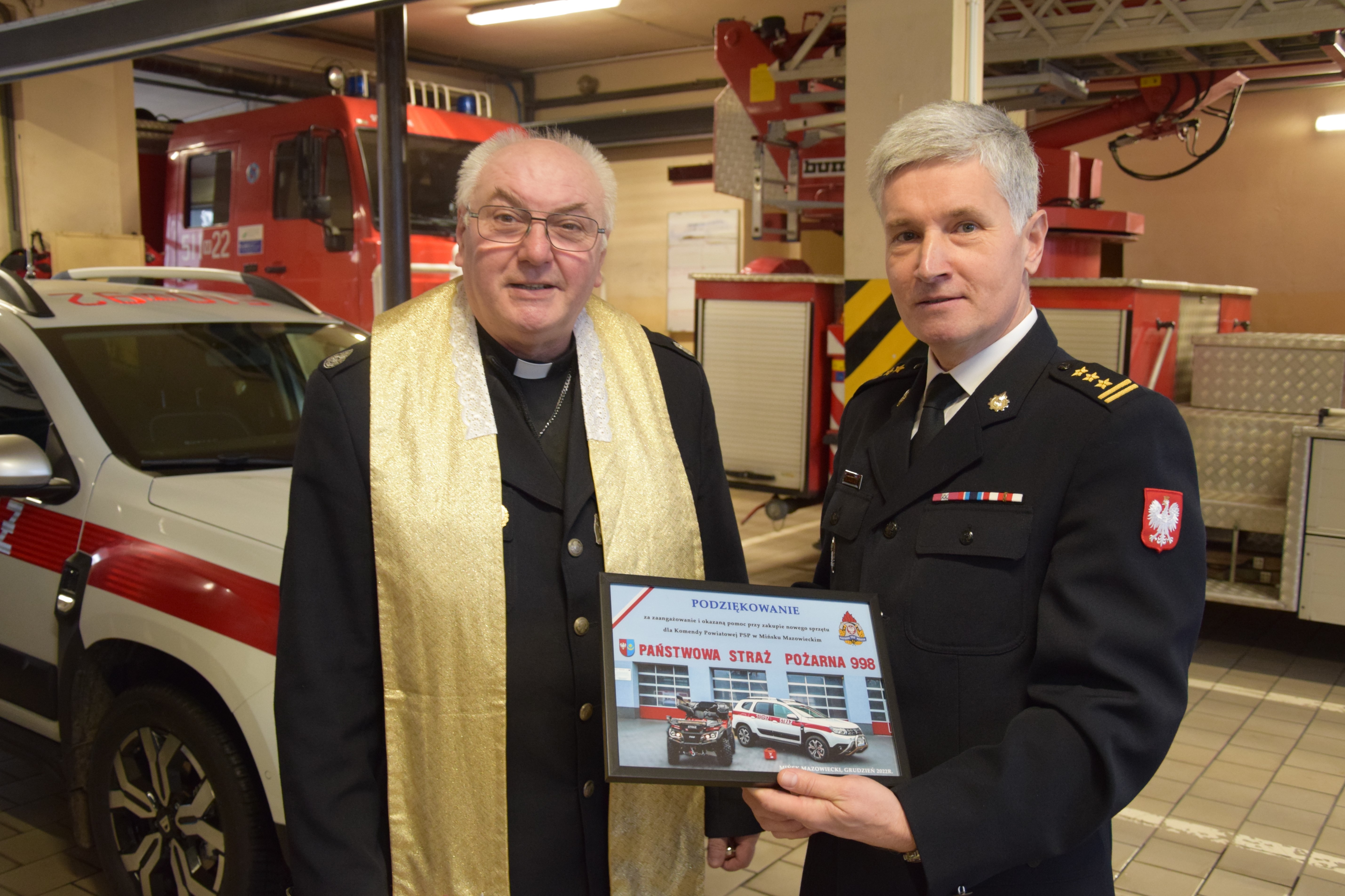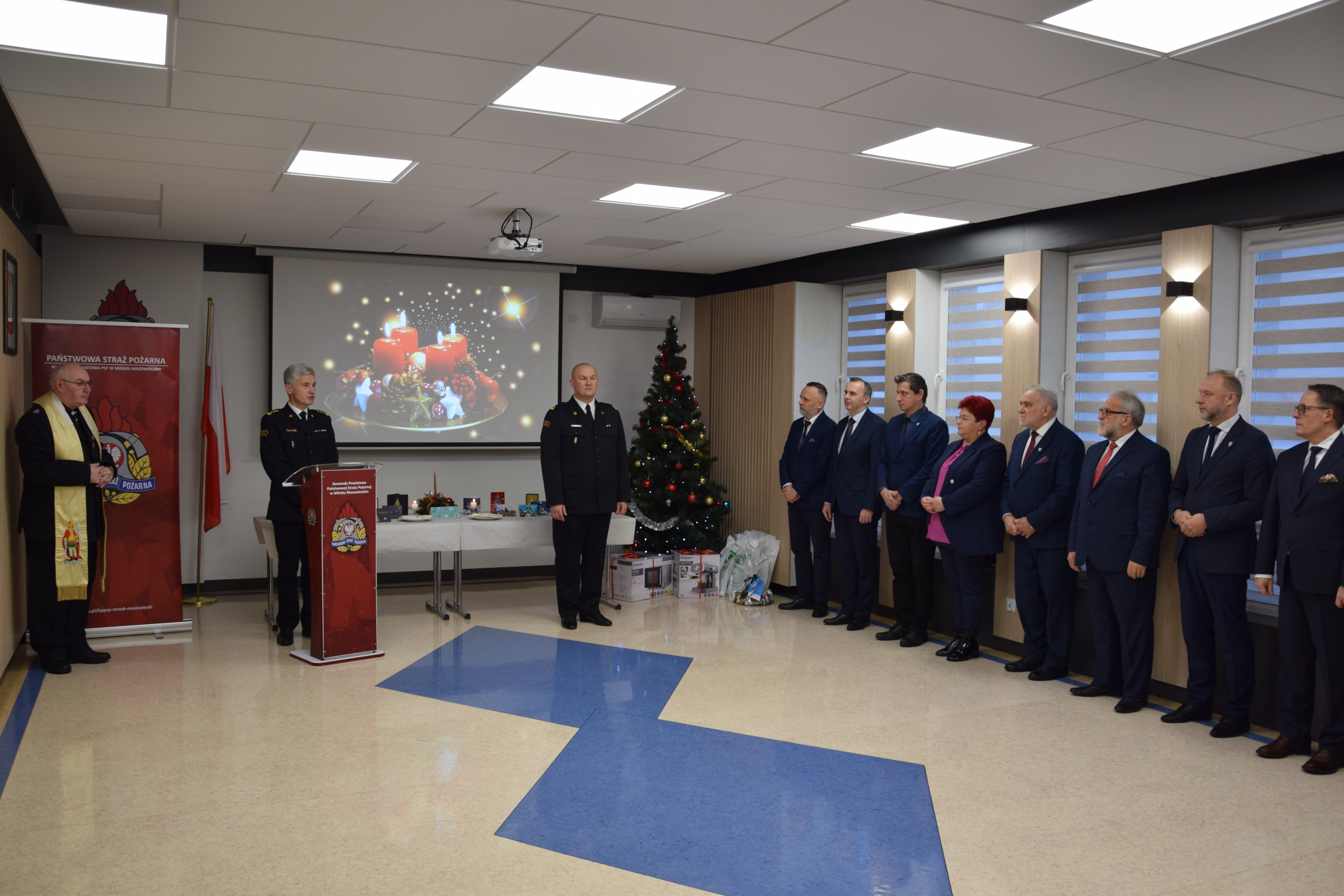W dniu 20 grudnia 2022 r. w Komendzie Powiatowej PSP w Mińsku Mazowieckim odbyło się spotkanie wigilijne, w którym uczestniczyli Panowie Komendanci oraz strażacy i pracownicy tut. Komendy, Kapelan Powiatowy Strażaków, a także Starosta Miński i przedstawiciele władz samorządowych powiatu mińskiego - wójtowie i burmistrzowie - oraz zaproszeni goście.
