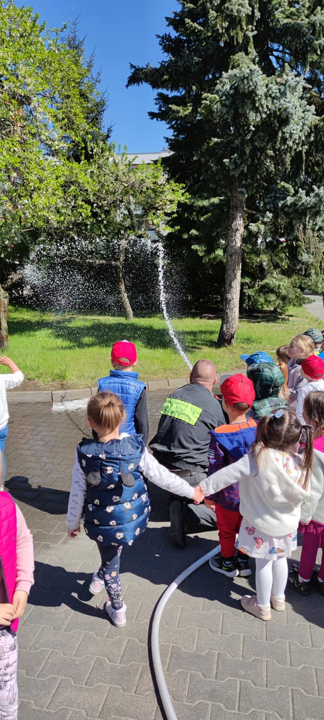 Celem wizyty było pokazanie najmłodszym jak wygląda praca strażaka, prezentacja wybranego sprzętu do działań ratowniczo-gaśniczych, pogadanka na temat "bezpiecznych wakacji", a na koniec zabawy z wodą.