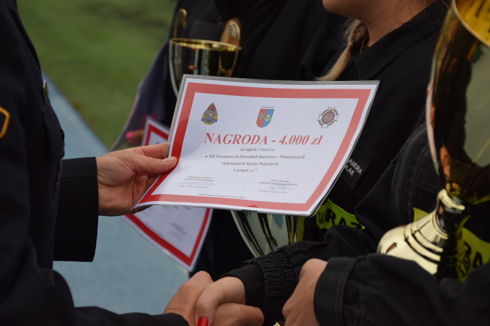 Pozostałe drużyny otrzymały pamiątkowe dyplomy. Fundatorami nagród byli: Pani Janina Ewa Orzełowska – członek zarządu województwa mazowieckiego, zarząd powiatu mińskiego, Zarząd Oddziału Powiatowego Związku Ochotniczych Straży Pożarnych Rzeczypospolitej Polskiej w Mińsku Mazowieckim, firma Armatec, Fire Squad oraz Premium Strażak. Wręczenia nagród dokonał dh Antoni Jan Tarczyński Prezes Zarządu Oddziału Wojewódzkiego i Powiatowego Związku Ochotniczych Straży Pożarnych, Starosta Miński, st. bryg. Krzysztof Komorowski Komendant Powiatowy Państwowej Straży Pożarnej w Mińsku Mazowieckim oraz wójtowie i burmistrzowie jednostek samorządowych powiatu mińskiego.
