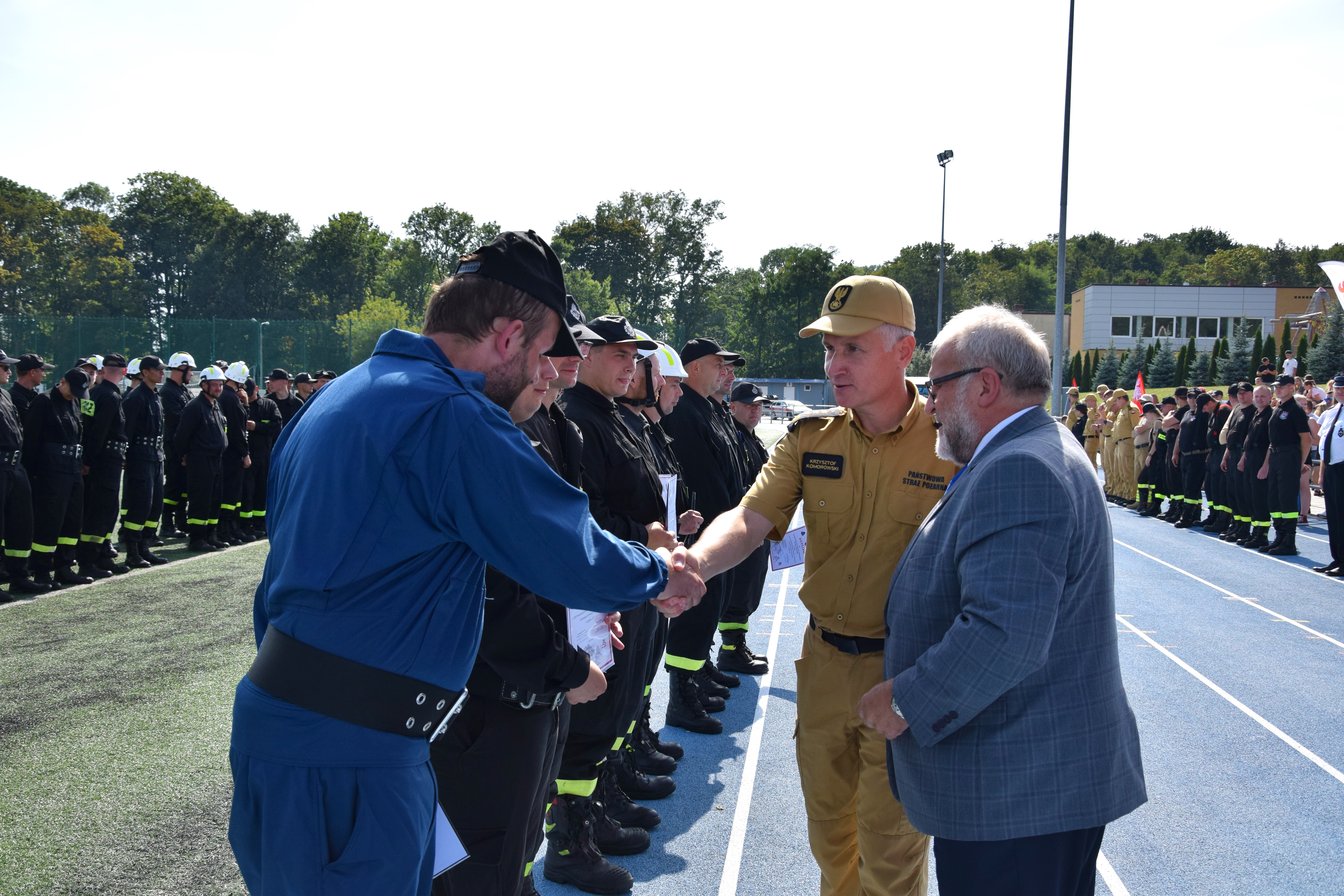 Wręczenia nagród dokonali: Pani Janina Ewa Orzełowska - Członek Zarządu Województwa Mazowieckiego, dh Antoni Jan Tarczyński - Prezes Zarządu Oddziału Wojewódzkiego i Powiatowego Związku Ochotniczych Straży Pożarnych, Starosta Miński, st. bryg. Krzysztof Komorowski - Komendant Powiatowy Państwowej Straży Pożarnej w Mińsku Mazowieckim oraz wójtowie i burmistrzowie z terenu powiatu mińskiego.