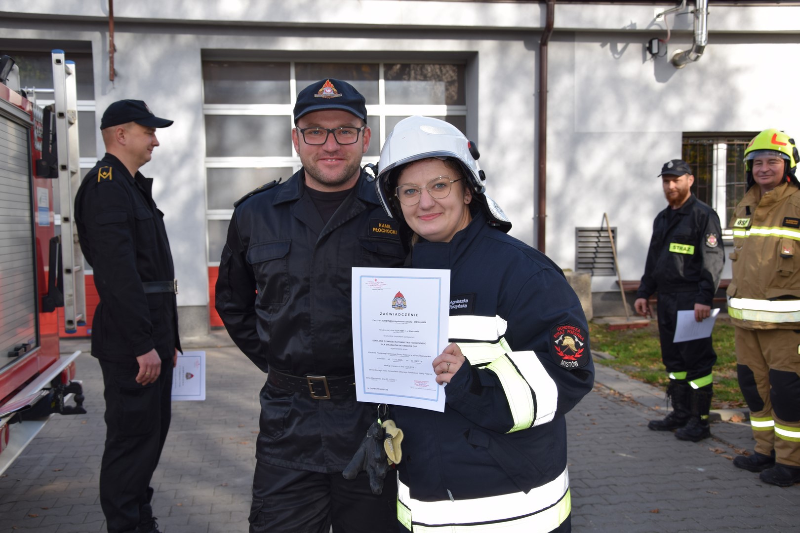którzy bezpłatnie udostępnili do celów szkoleniowych swój sprzęt i zezłomowane pojazdy. Egzamin składający się z części teoretycznej oraz praktycznej pozytywnie ukończyło 21 druhów w tym 1 druhna z jednostki OSP Mistów.