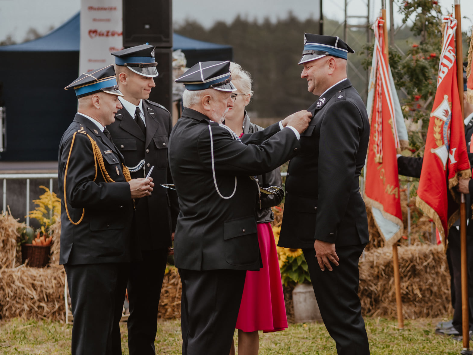 W uroczystości uczestniczyli: Z-ca Mazowieckiego Komendanta Wojewódzkiego Państwowej Straży Pożarnej-st. bryg. Dariusz Stumski, Starosta Mławski-Jerzy Rakowski, Komendant PSP w Mławie-st. bryg. Zbigniew Kąpiński, Komendant Powiatowy Policji w Mławie-insp. Artur Ryfiński, Prezes Zarządu Oddziału Powiatowego ZOSP RP-dh Włodzimierz Wojnarowski, Prezes Zarządu Oddziału Gminnego ZOSP RP-dh Przemysław Pakuszewski.