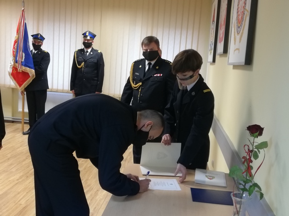 Awansowanym serdecznie gratulujemy, a strażakom składającym ślubowanie życzymy realizacji wszystkich założonych celów pełniąc zaszczytną służbę w Państwowej Straży Pożarnej.