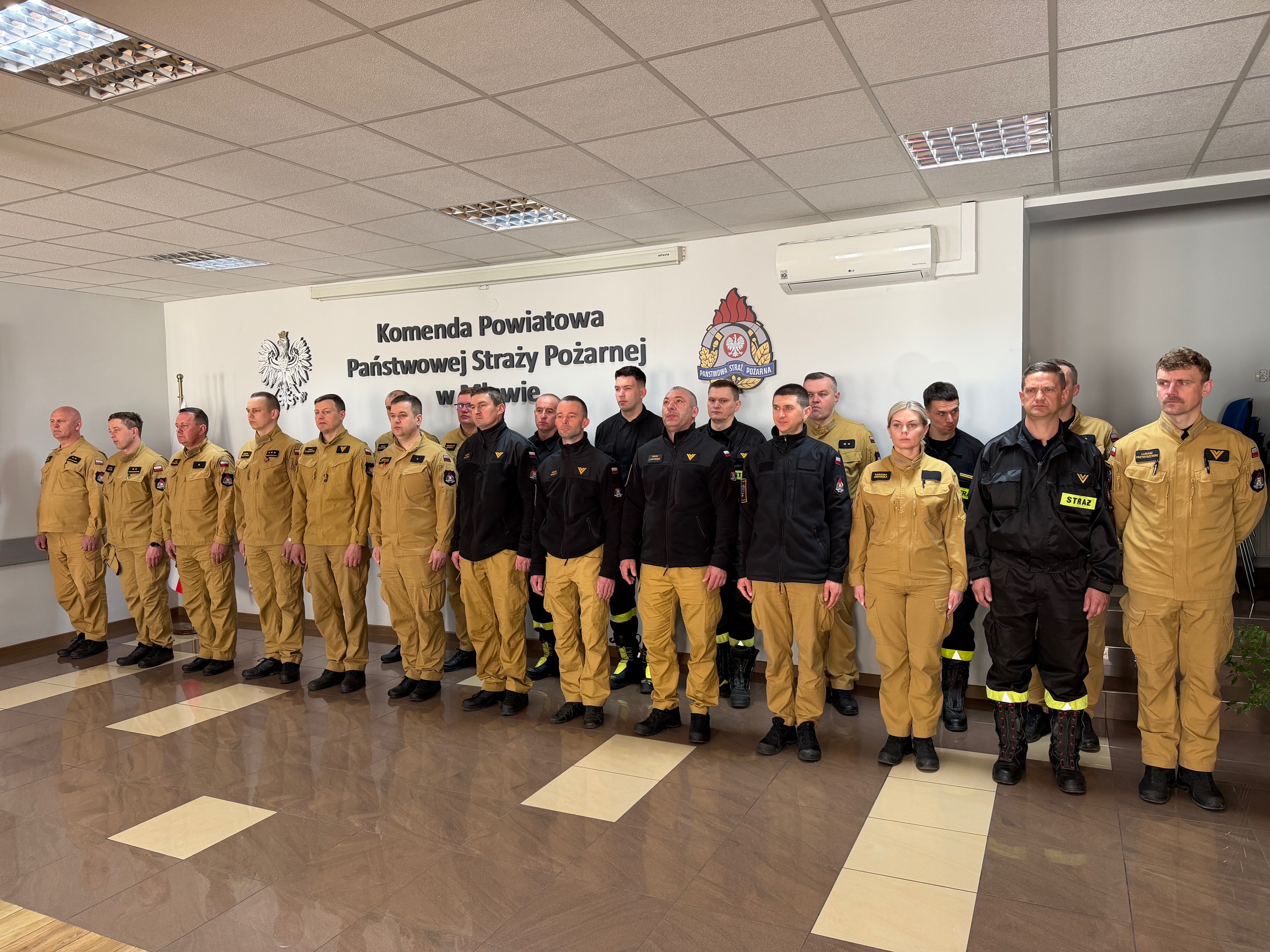 2 kwietnia 2026 roku w Komendzie Powiatowej Państwowej Straży Pożarnej w Mławie odbyła się uroczysta zbiórka, podczas której wręczono decyzje o awansach na wyższe stanowiska służbowe. Aktu wręczenia dokonał Komendant Powiatowy PSP w Mławie, st. bryg. Jarosław Andruszkiewicz, w obecności Zastępcy Komendanta Powiatowego, kpt. Łukasza Kwitka.