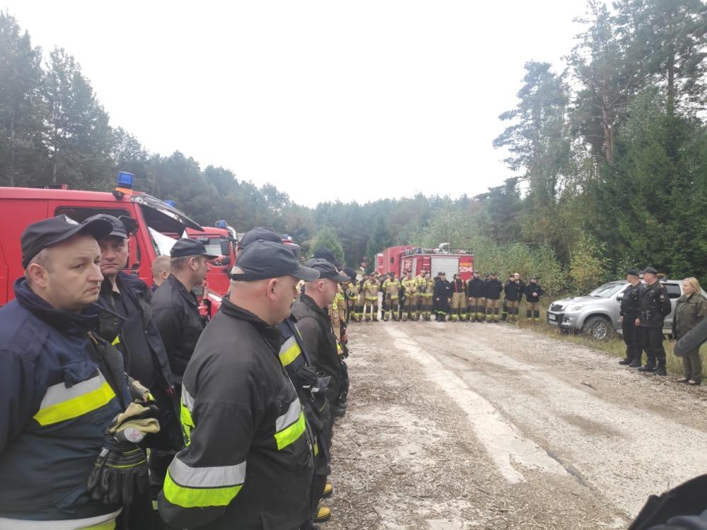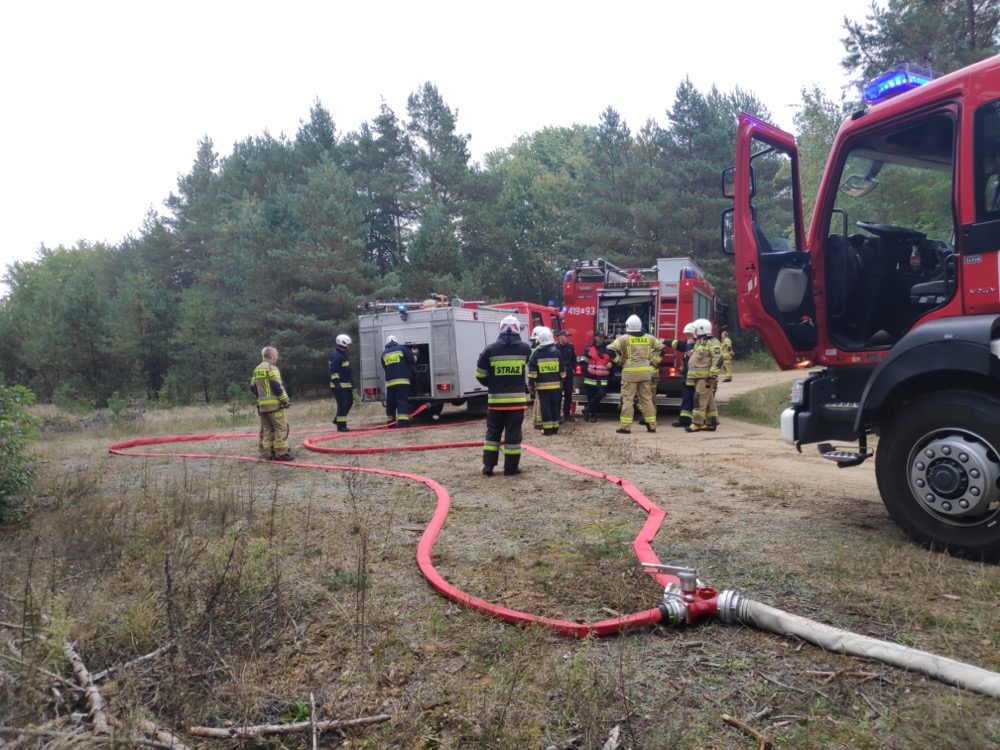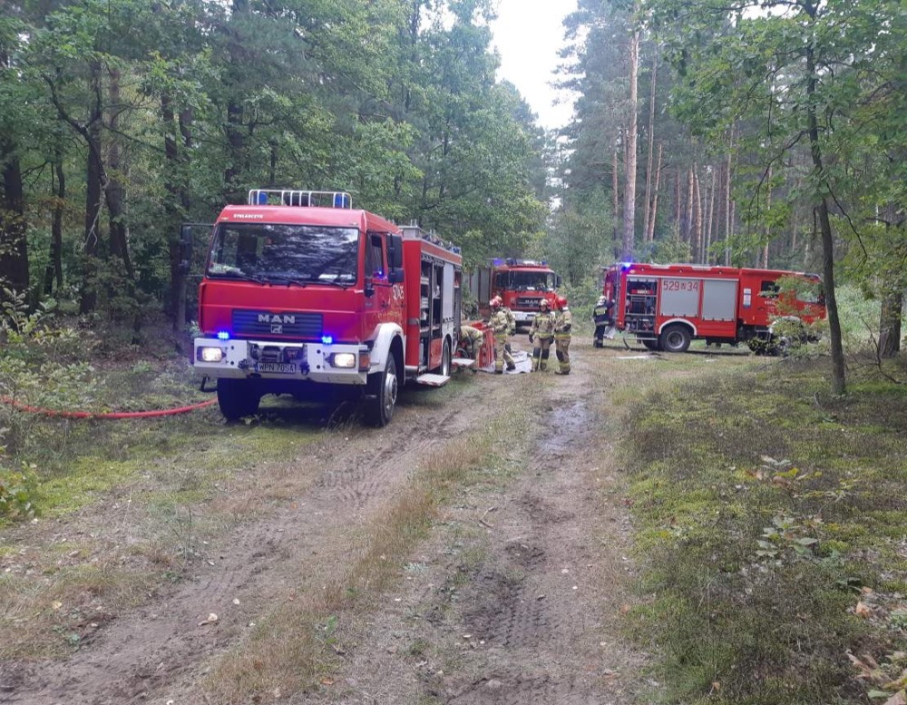 na jego froncie o długości około 100 m oraz zbudowały punkt czerpania wody z rozwinięciem linii głównej W110. W trakcie prowadzenia działań gaśniczych pojawiły się nowe ogniska pożaru. Siły i środki na wniosek KDR otrzymały wsparcie poprzez samolot gaśniczy zadysponowany przez Nadleśnictwo Przasnysz.