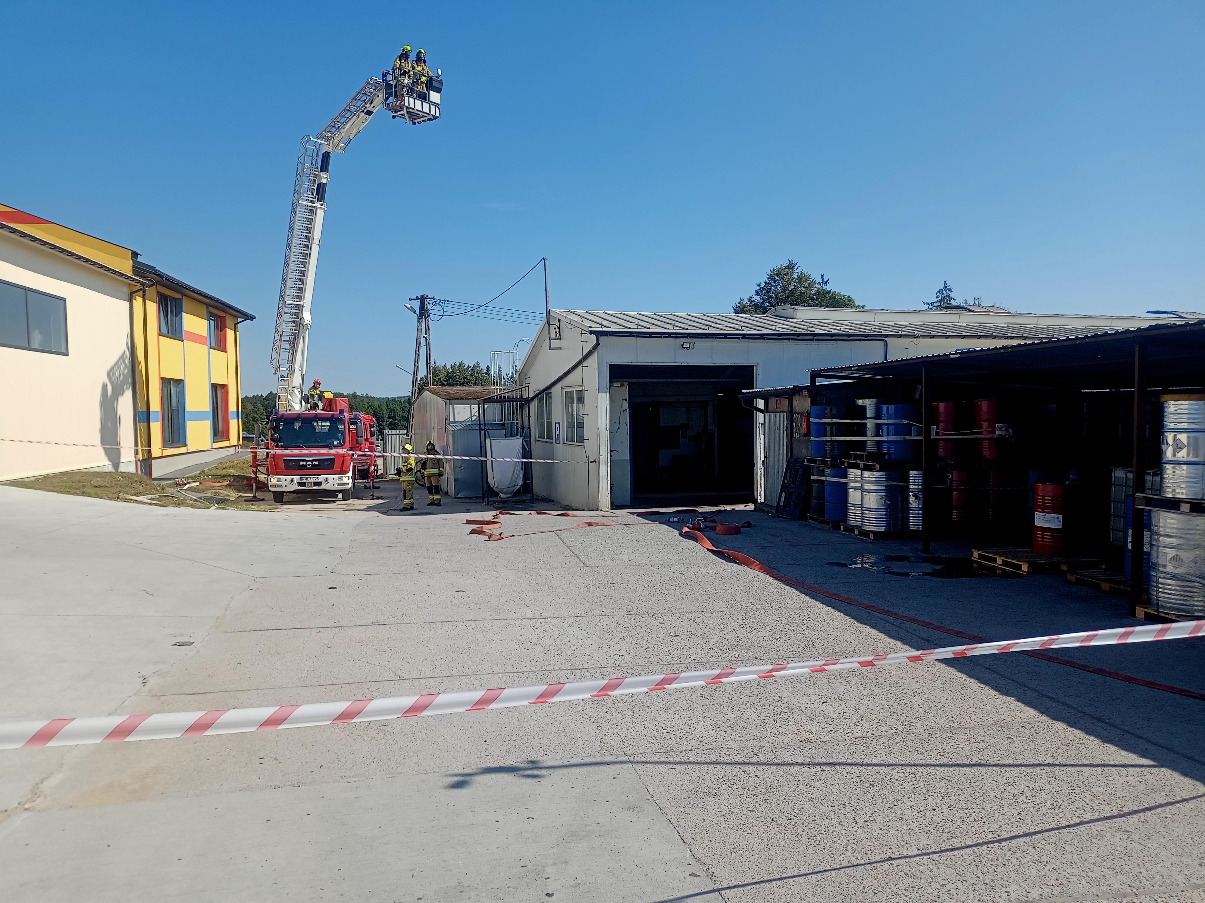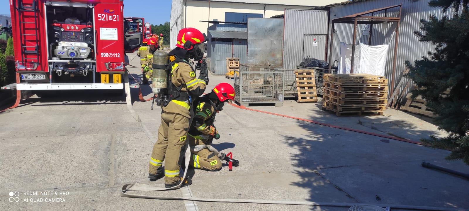 Ćwiczenia praktyczne jednostek ochrony przeciwpożarowych na terenie firmy Lubaz