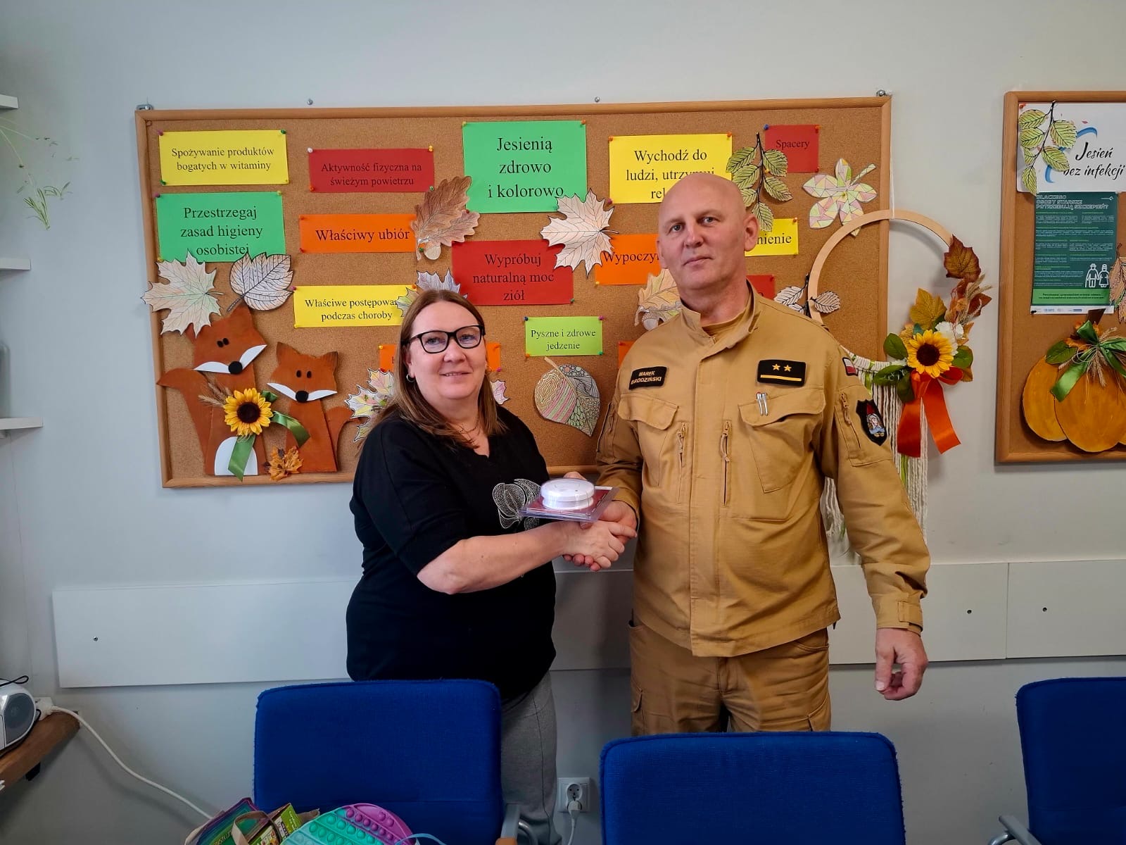 Na zakończenie spotkań szkole oraz Dziennemu Domowi „Senior +” przekazano po jednej czujce dymu.