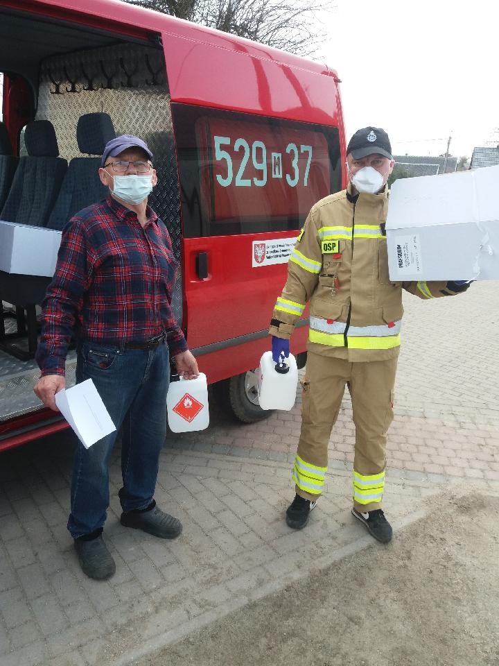 9 jednostek Ochotniczych Straży Pożarnych rozdysponowali 82500 szt. maseczek oraz 500 l. płynu do dezynfekcji.