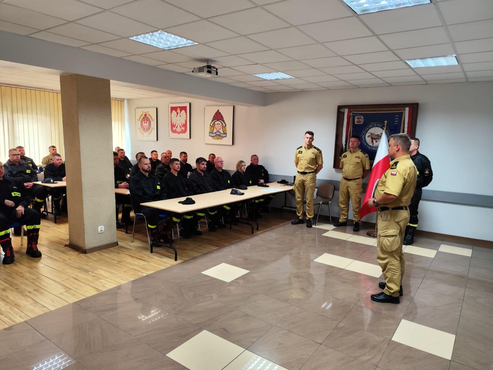 Zaświadczenia potwierdzające zdobycie nowych kwalifikacji w imieniu komendanta powiatowego Państwowej Straży Pożarnej w Mławie bryg. Mirosława Wójcika wręczył naczelnik wydziału operacyjnego mławskiej komendy mł. bryg. Jacek Dryll.