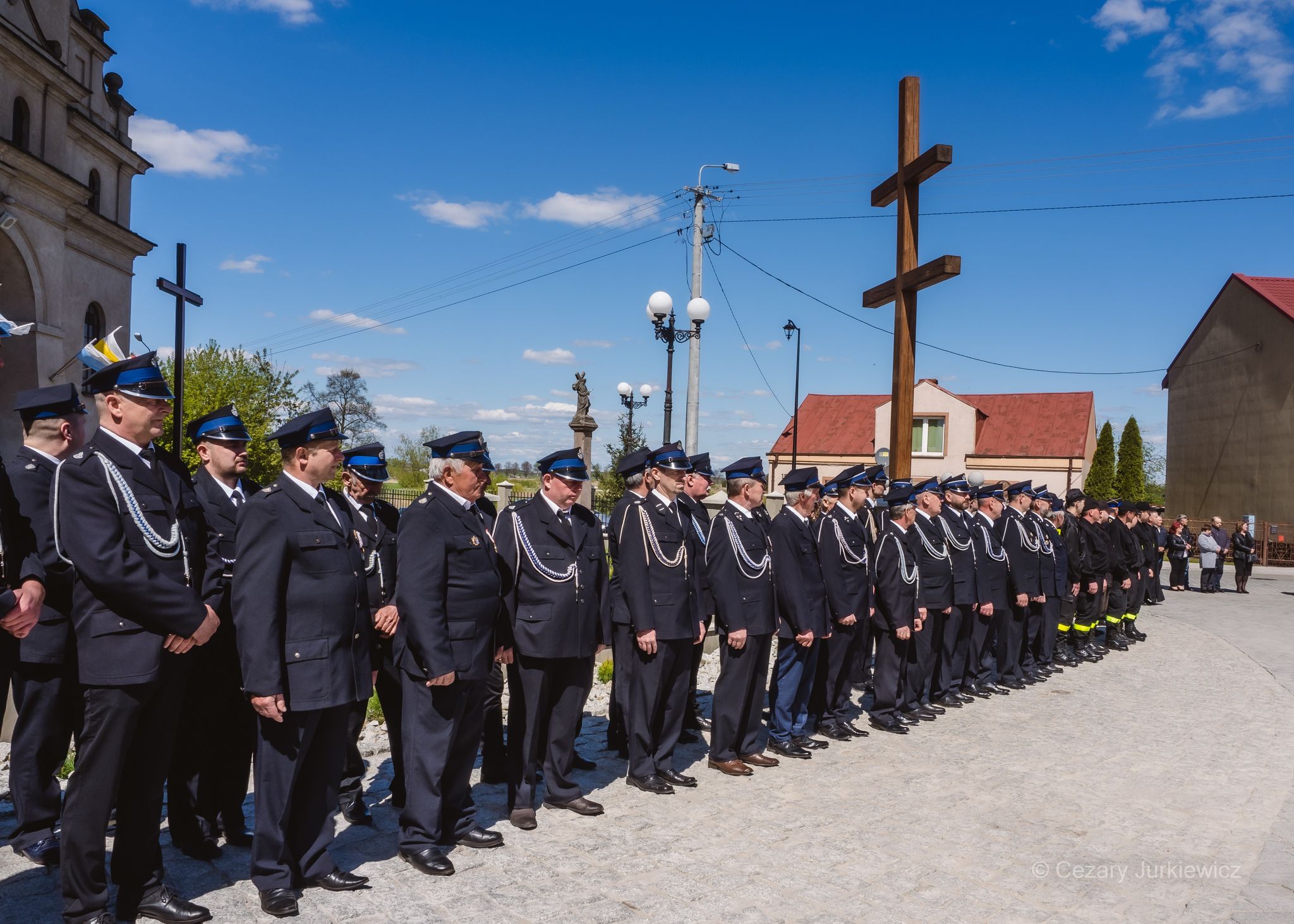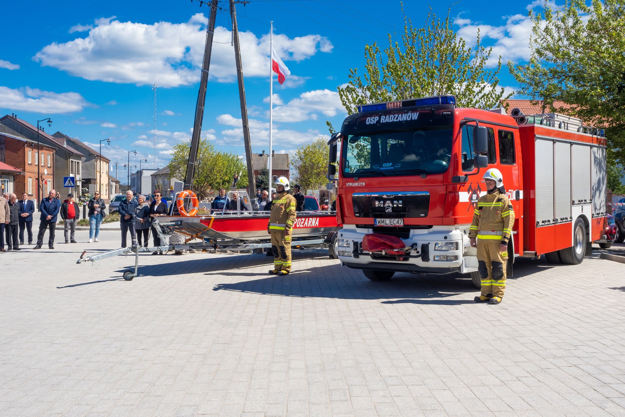 W środę, 3 maja 2023 roku Komendant Powiatowy PSP w Mławie bryg. Mirosław Wójcik uczestniczył w Gminnych Obchodach Dnia Strażaka w Radzanowie. Podczas uroczystości poświęcono samochód ratowniczo-gaśniczy oraz łódź, będącą na wyposażeniu OSP Radzanów.
