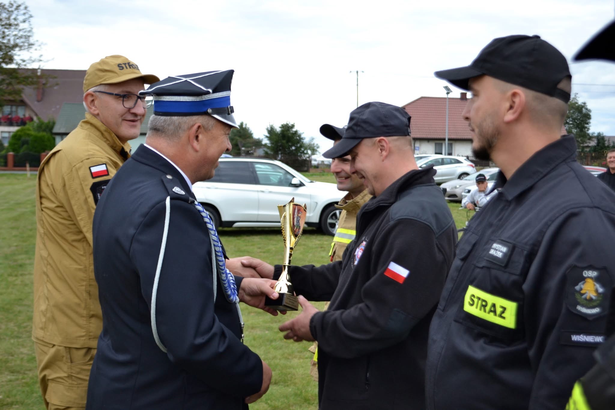 Puchary, dyplomy oraz nagrody zwycięzcom wręczyli: pan Grzegorz Woźniak – wójt gminy Wiśniewo oraz druh Karol Wtulich – komendant gminny OSP z terenu gminy Wiśniewo.