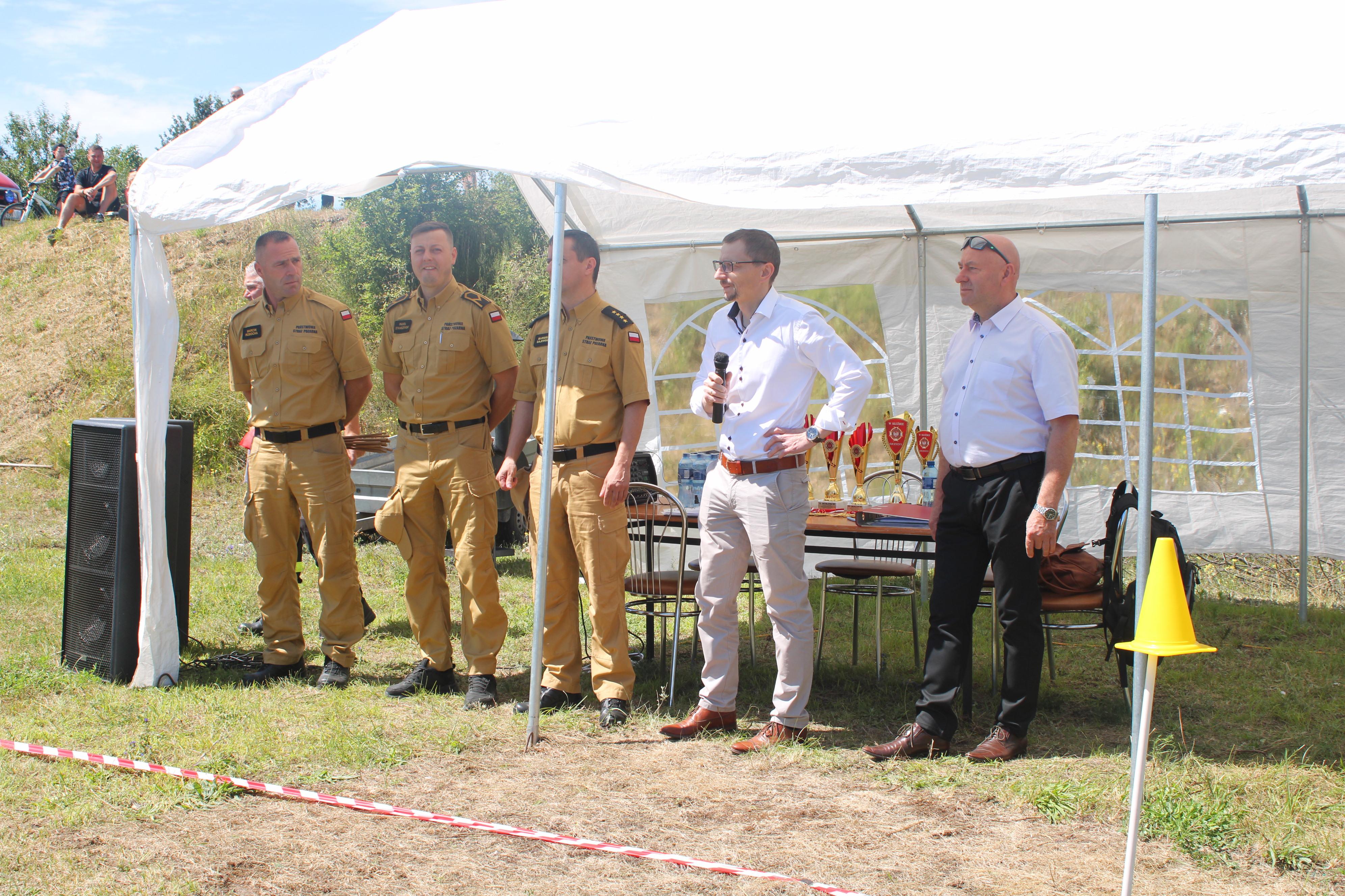 Puchary, dyplomy oraz nagrody dla zwycięzców wręczyli p. Ryszard Karpiński wójt gminy Lipowiec Kościelny oraz p. Dariusz Zalewski komendant gminny Ochotniczych Straży Pożarnych z terenu gminy Lipowiec Kościelny.
