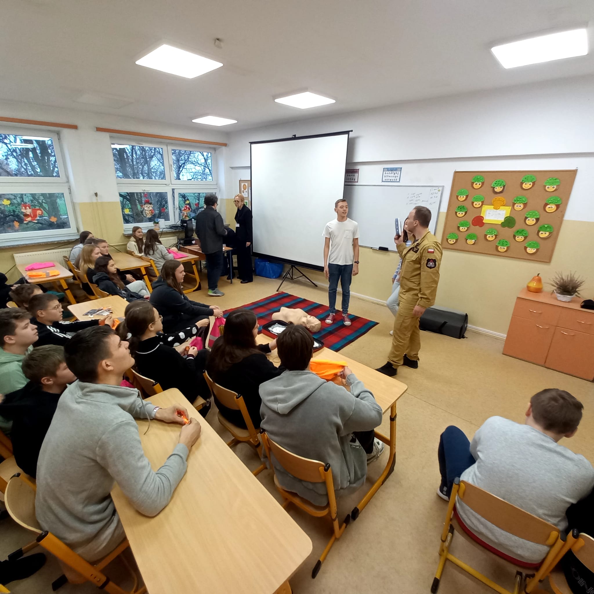 Podczas spotkań funkcjonariusze przybliżyli uczniom zasady udzielania pierwszej pomocy, wykorzystując specjalistyczny fantom, co pozwoliło uczestnikom na praktyczne zapoznanie się z tym ważnym zagadnieniem. Strażacy udzielili także cennych wskazówek dotyczących zachowania w sytuacjach zagrożenia oraz odpowiadali na pytania uczniów i nauczycieli. Spotkania cieszyły się dużym zainteresowaniem i zostały pozytywnie ocenione przez uczestników.