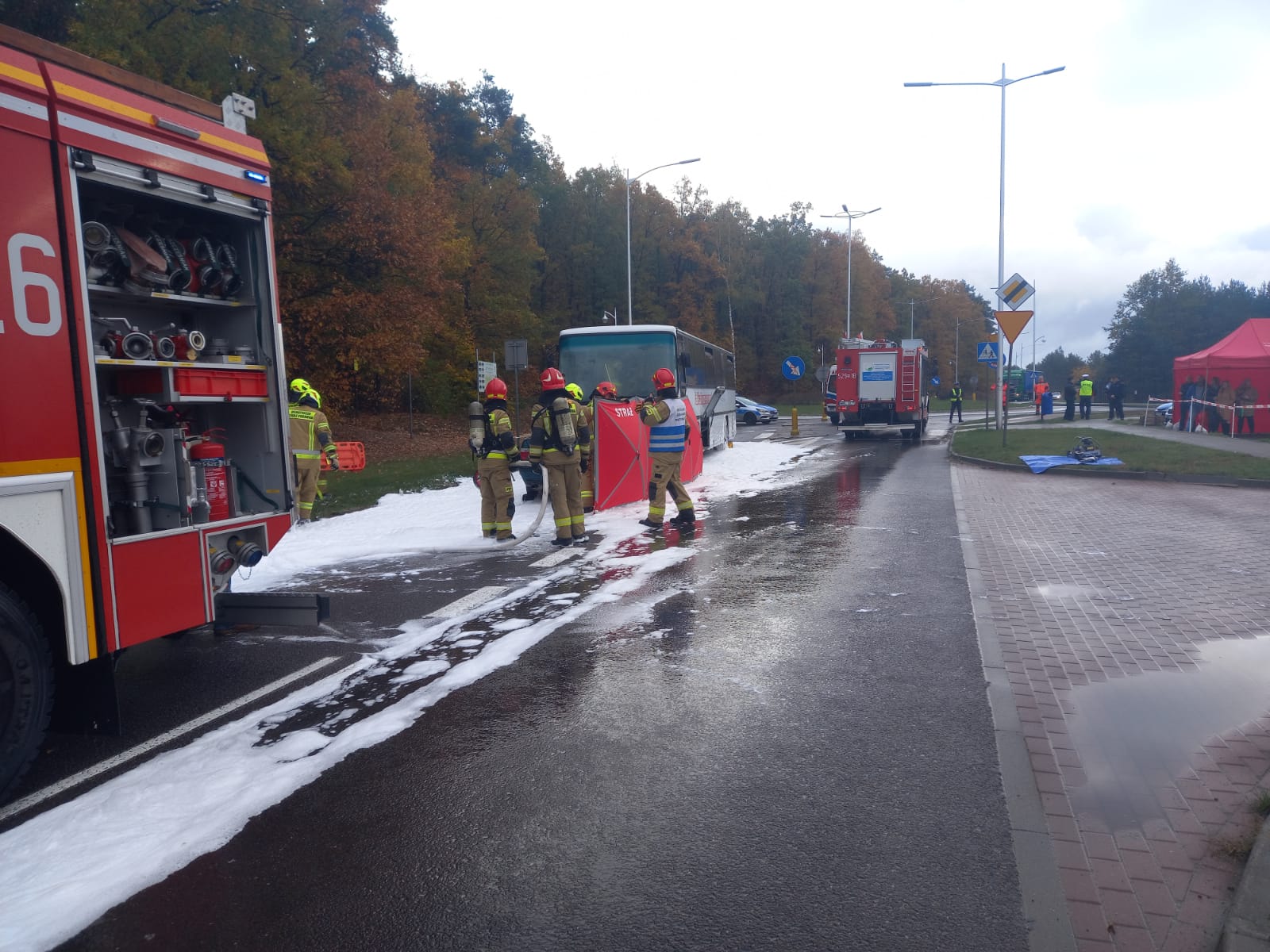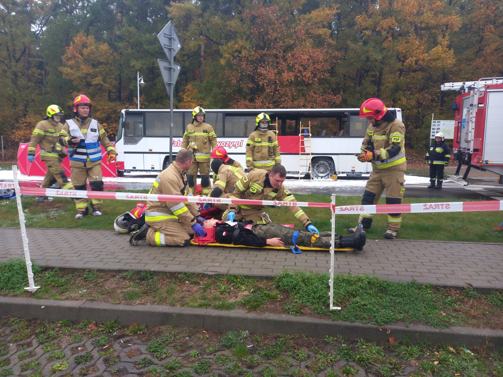 W środę 19 października 2022 r. w ramach powiatowych ćwiczeń obronnych pk. „Jesień 2022” odbyły się manewry służb współdziałających. Scenariusz ćwiczeń zakładał zderzenie samochodu osobowego z autokarem wiozącym żołnierzy na Alei Marszałkowskiej w pobliżu ronda Flagi Polskiej. W wyniku wypadku kierowca samochodu osobowego poniósł śmierć na miejscu zdarzenia, a 19 żołnierzy zostało rannych. Dodatkowe zagrożenie stanowiła przewożona w bagażniku autokaru broń. W ćwiczeniach udział wzięło 12 strażaków KP PSP w Mławie, 15 druhów OSP z jednostek w Niedzborzu, Szydłowie oraz Kowalewie, funkcjonariusze z KPP w Mławie, a także 2 zespoły ratownictwa medycznego z SPZOZ w Mławie. Gościnnie na ćwiczeniach, w charakterze pozorantów wystąpili uczniowie ACK w Mławie.