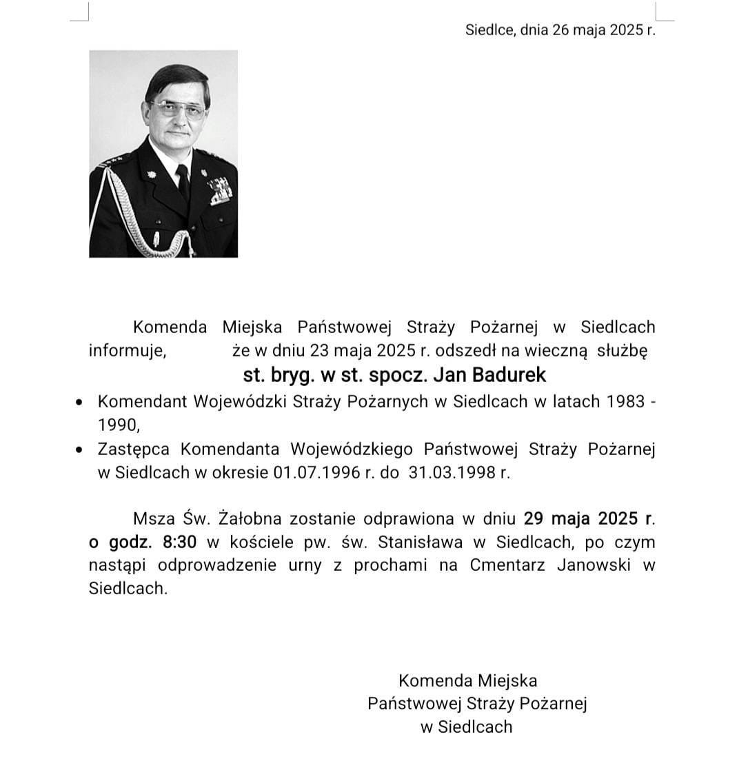 Odszedł na wieczną służbę st. bryg. w st. spocz. Jan Badurek