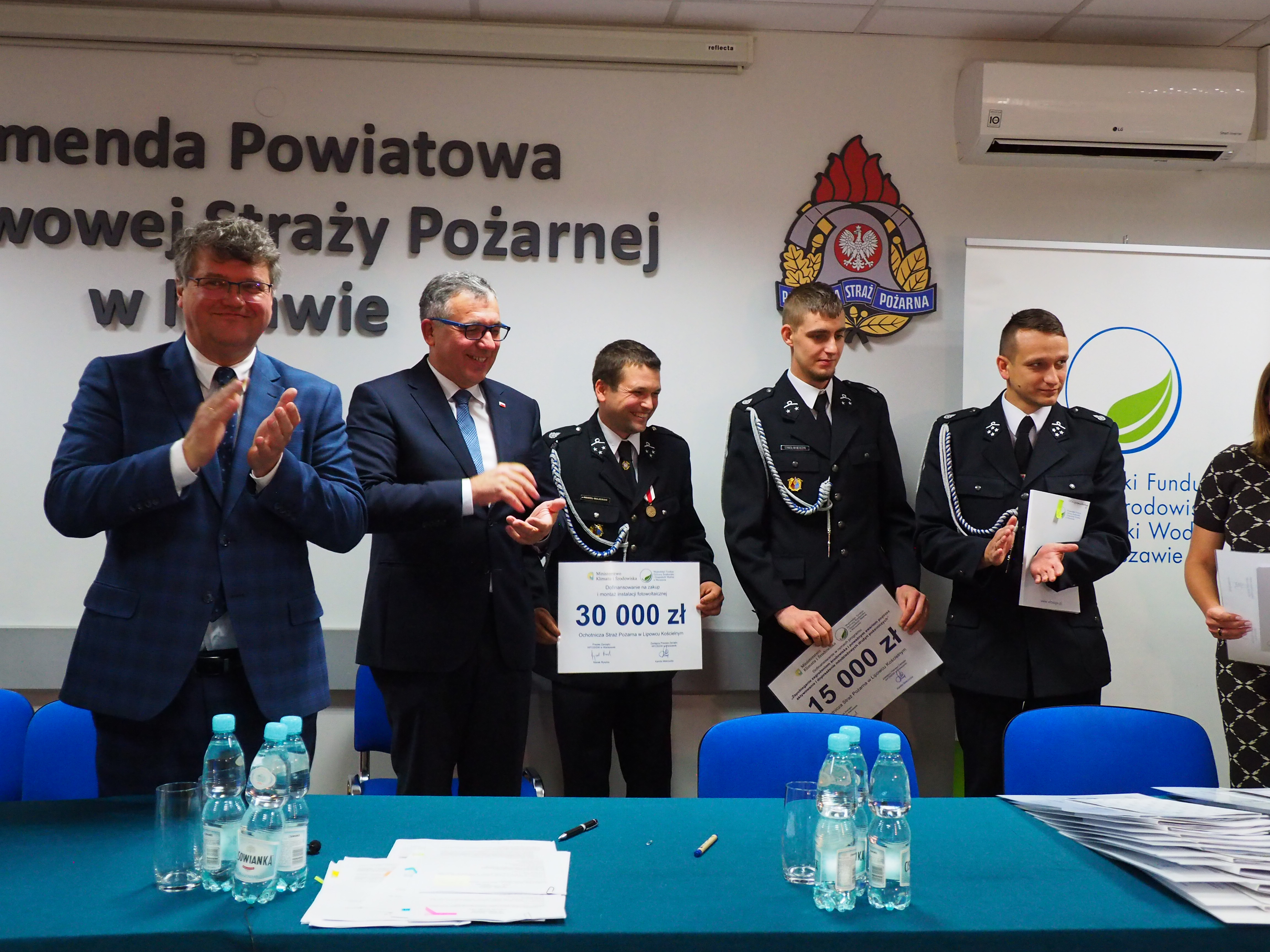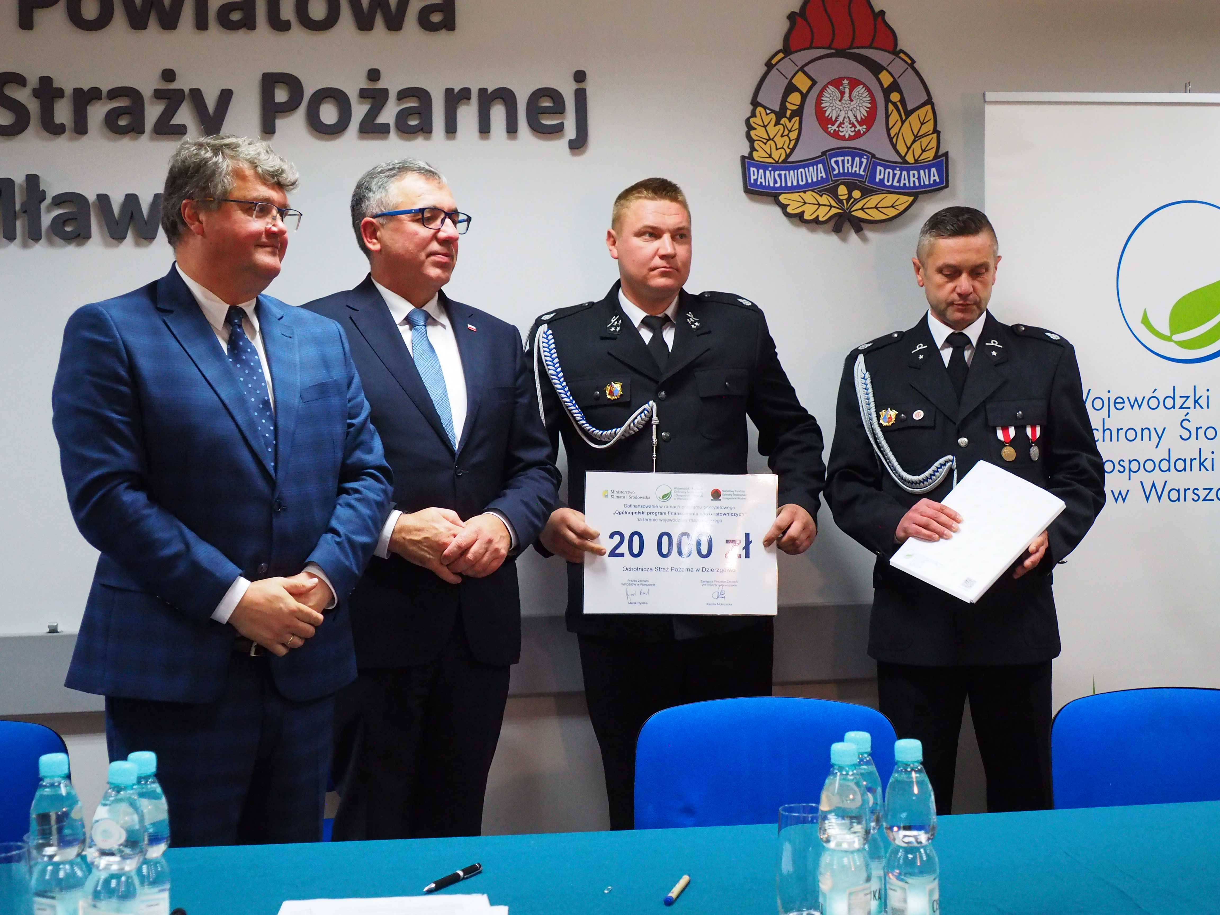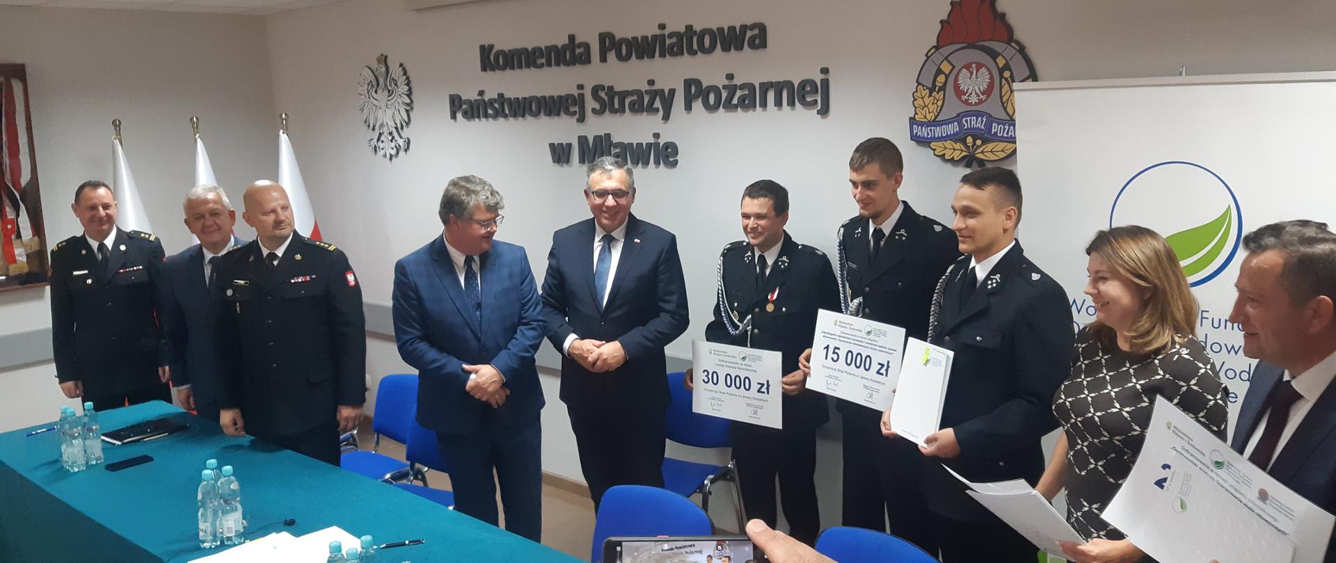 W poniedziałek 3 października 2022 roku w siedzibie Komendy Powiatowej PSP w Mławie Prezes Zarządu Wojewódzkiego Funduszu Ochrony Środowiska i Gospodarki Wodnej w Warszawie Pan Marek Ryszka podpisał umowy z przedstawicielami jednostek Ochotniczych Straży Pożarnych z terenu powiatów mławskiego, przasnyskiego, ciechanowskiego i płońskiego. Na uroczystym spotkaniu, przy podpisaniu umów obecni byli również: Sekretarz Stanu w Ministerstwie Spraw Wewnętrznych i Administracji Pan Maciej Wąsik, Starosta Mławski Pan Jerzy Ryszard Rakowski, Dyrektor Wojewódzkiego Funduszu Ochrony Środowiska i Gospodarki Wodnej Wydziału zamiejscowego w Ciechanowie Pani Justyna Jakubiak, Dyrektor Biura Poselskiego Wiceministra Macieja Wąsika Pan Stefan Pawłowski, Zastępca Mazowieckiego Komendanta Wojewódzkiego PSP st. bryg. Tomasz Cybul, Komendant Powiatowy Państwowej Straży Pożarnej w Mławie bryg. Mirosław Wójcik oraz lokalne władze samorządowe, Członek Zarządu Powiatu Mławskiego Pani Jolanta Karpińska.