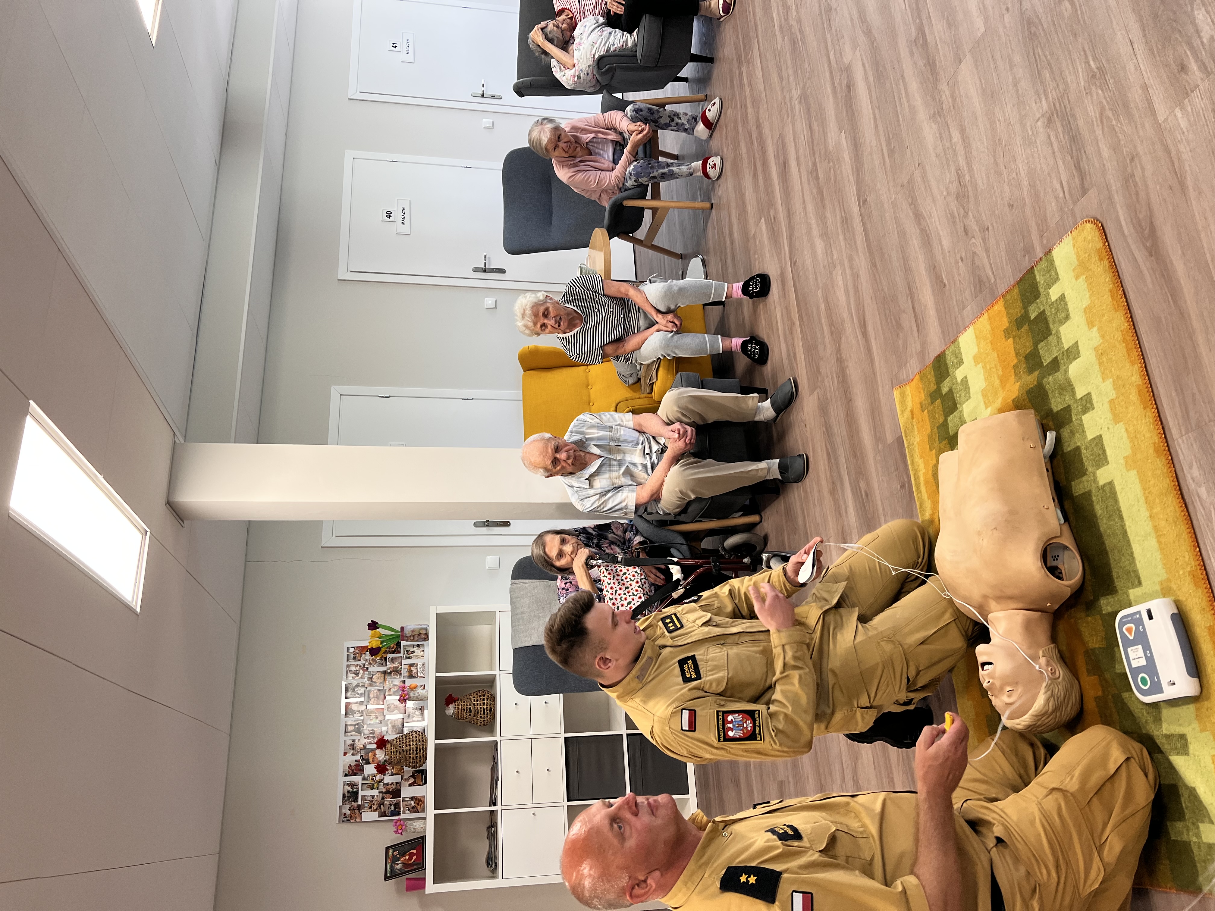01 lipca 2025r. funkcjonariusze Komendy Powiatowej PSP w Mławie przeprowadzili pogadankę na temat bezpieczeństwa w Domu Seniora „DWORSKIE OGRODY”, która była połączona z pokazem kwalifikowanej pierwszej pomocy przedmedycznej.
