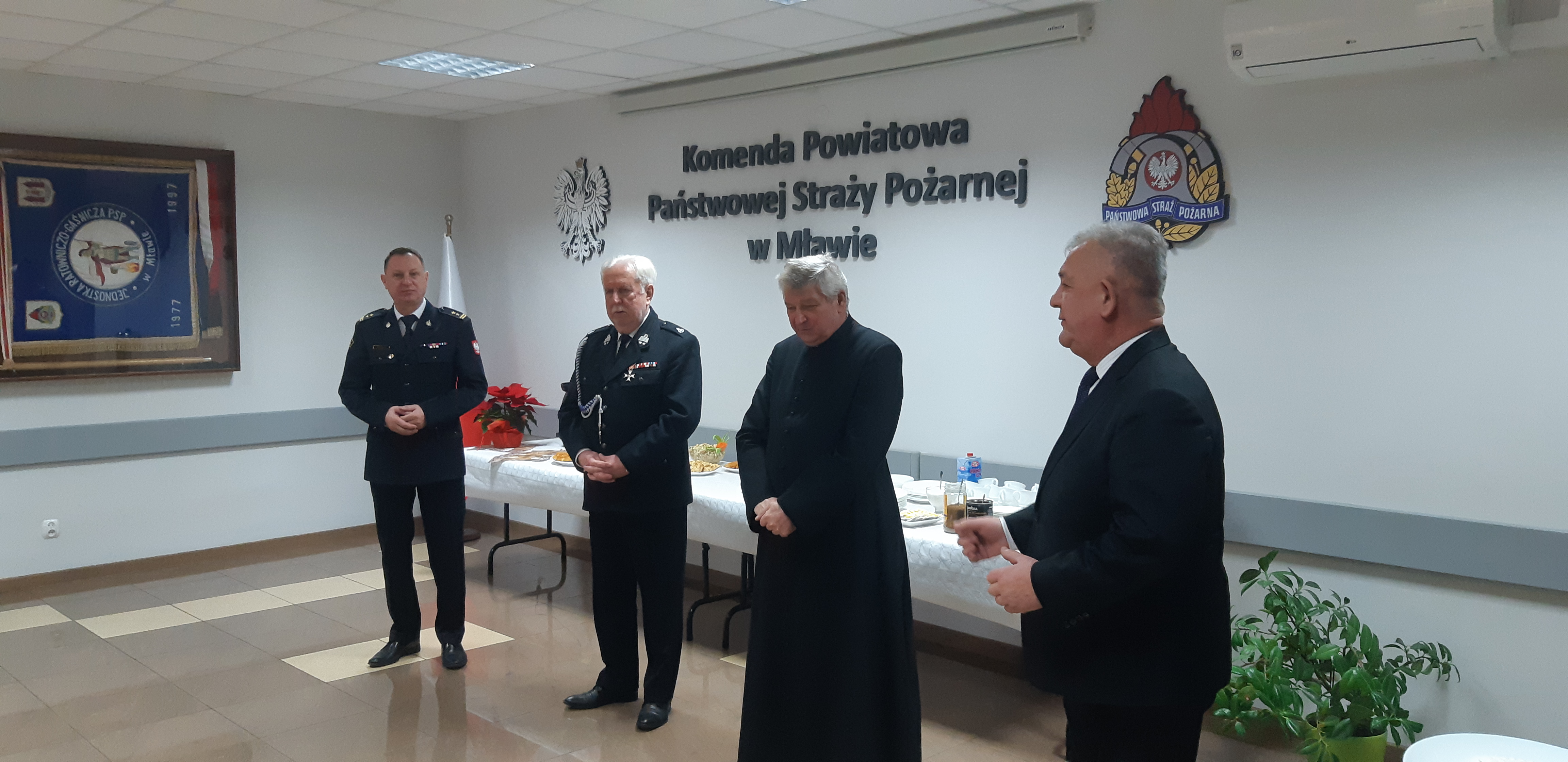 Na zakończenie posiedzenia bryg. Mirosław Wójcik oraz dh Włodzimierz Wojnarowski złożyli wszystkim uczestnikom serdeczne życzenia z okazji nadchodzących Świąt Bożego Narodzenia, a kapelan powiatowy strażaków ks. Jerzy Piątek wspólnie z uczestnikami posiedzenia odmówił modlitwę oraz poświęcił opłatek, którym wszyscy symbolicznie się przełamali.