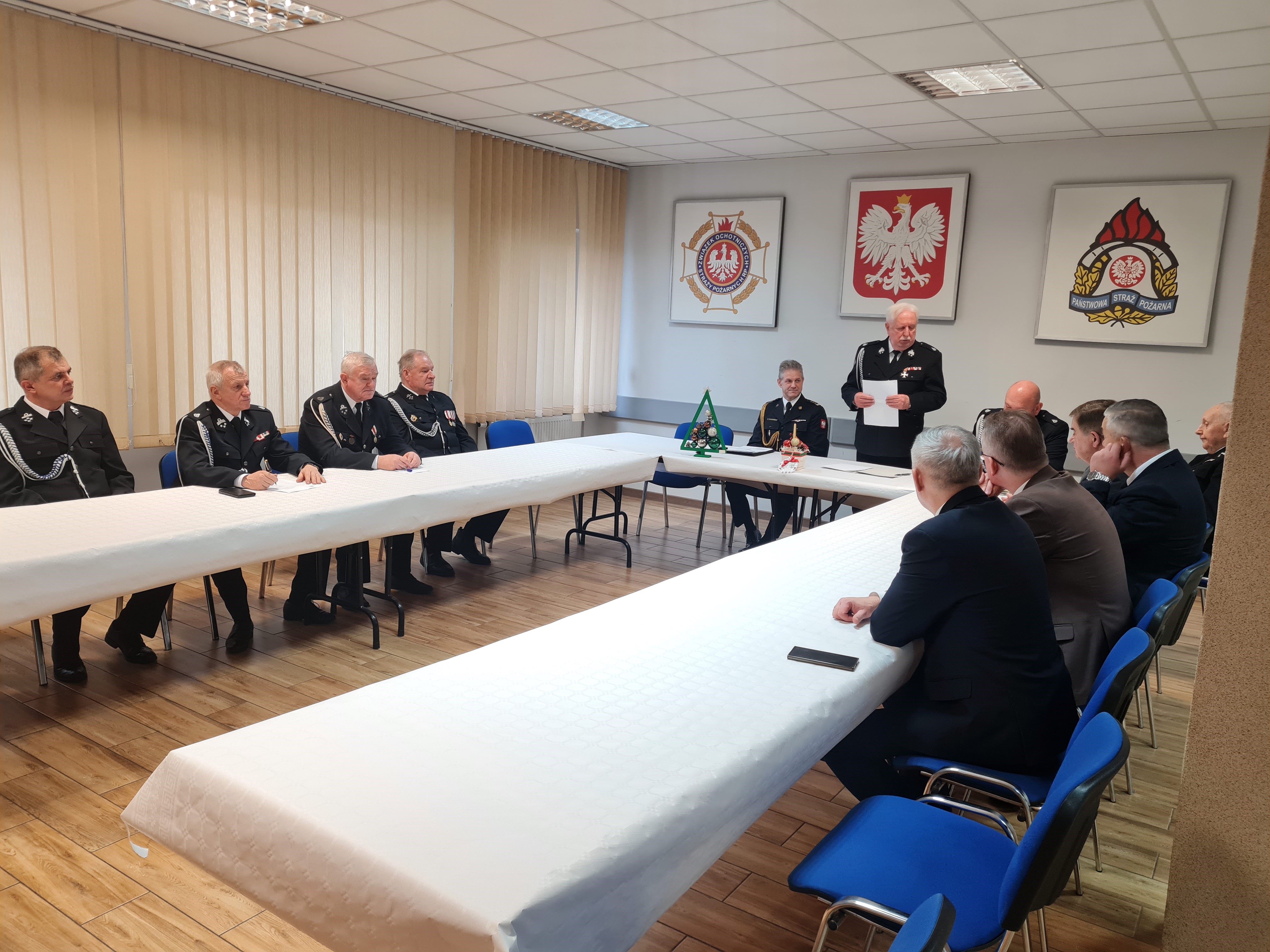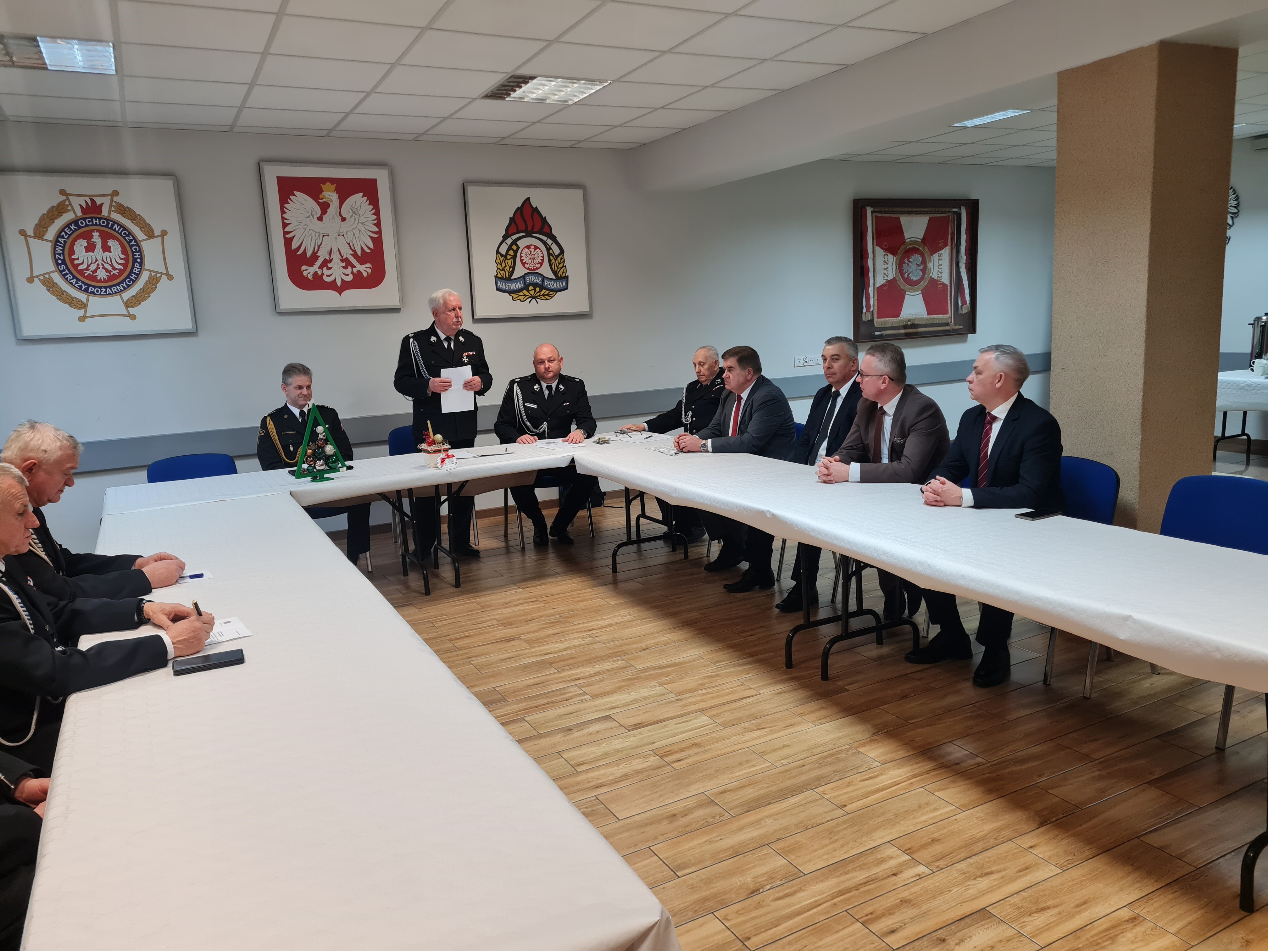 Na zakończenie posiedzenia st. bryg. Jarosław Andruszkiewicz oraz druh Włodzimierz Wojnarowski złożyli serdeczne życzenia z okazji nadchodzących Świąt Bożego Narodzenia, a uczestnicy symbolicznie podzielili się opłatkiem.