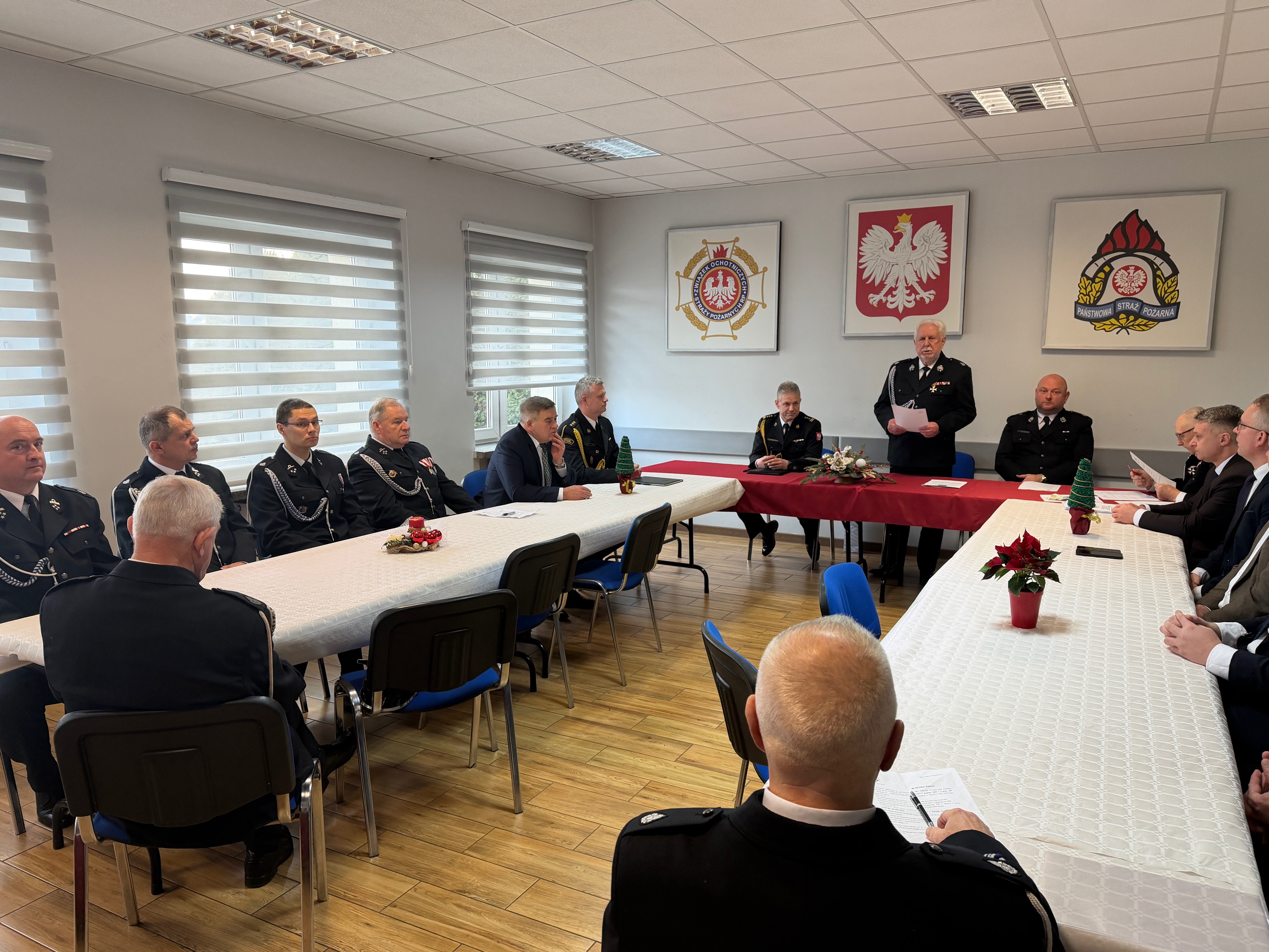 Na zakończenie posiedzenia st. bryg. Jarosław Andruszkiewicz oraz druh Włodzimierz Wojnarowski złożyli serdeczne życzenia z okazji nadchodzących Świąt Bożego Narodzenia, a uczestnicy symbolicznie podzielili się opłatkiem.