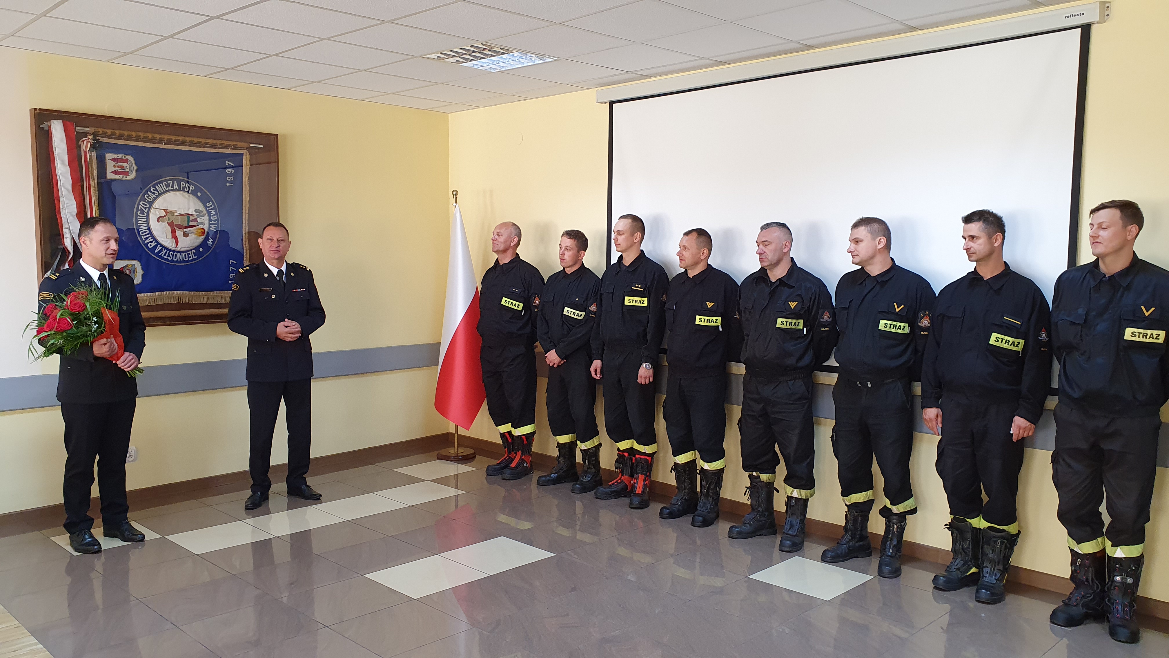 Dwa dni później w środę 27 lipca 2022 roku w siedzibie Komendy Powiatowej Państwowej Straży Pożarnej w Mławie odbyła się uroczysta zbiórka funkcjonariuszy i pracowników cywilnych, podczas której Komendant Powiatowy bryg. Mirosław Wójcik oficjalnie przywitał swojego Zastępcę, jednocześnie składając życzenia dalszych sukcesów zawodowych. Mł. bryg. Tomasz Maciejewski podczas przemówienia zadeklarował chęć dalszego rozwoju mławskiej komendy podkreślając jednocześnie istotną rolę komunikacji w relacjach międzyludzkich, która ma istotne znaczenie