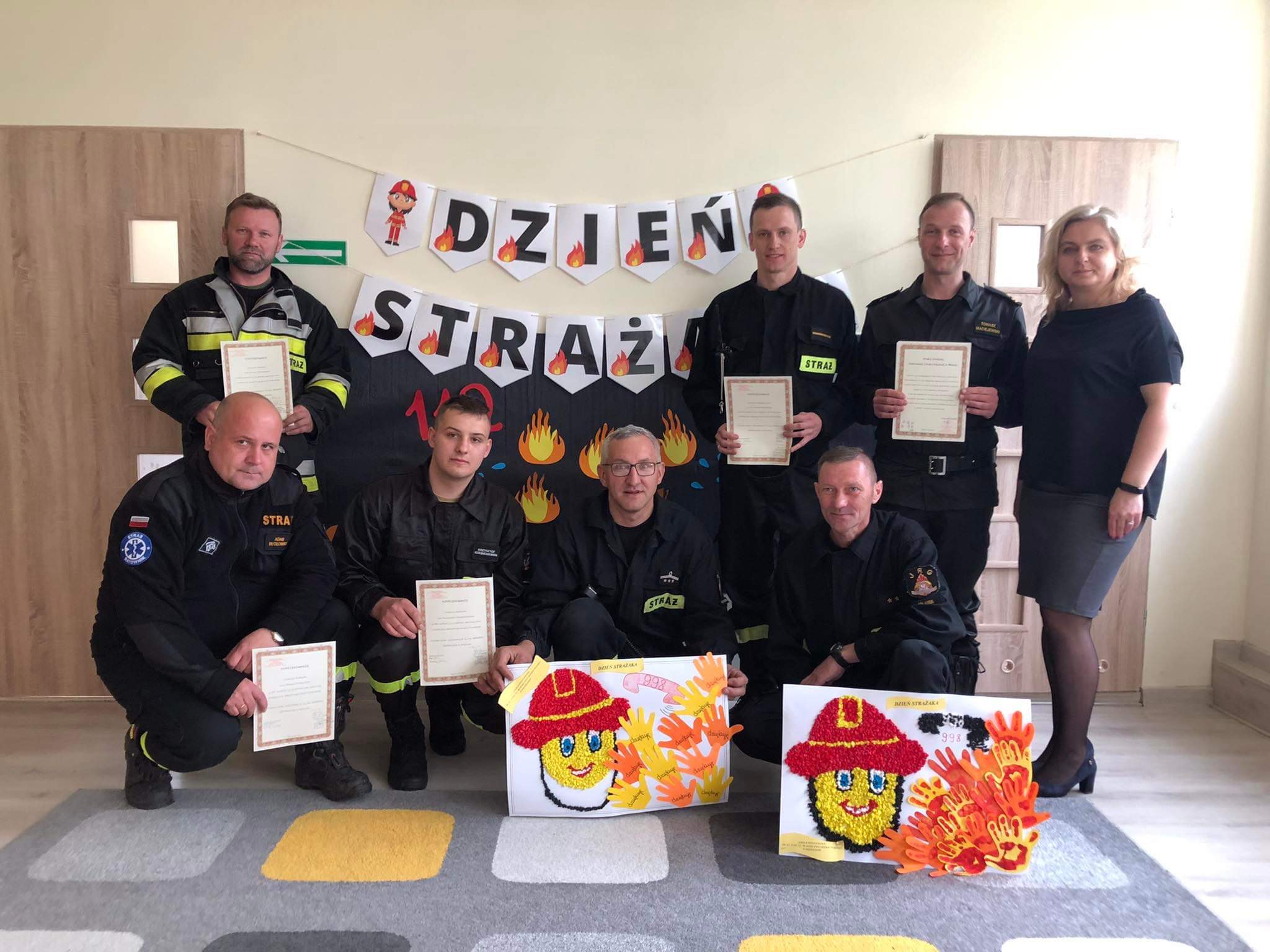 Na zakończenie spotkania Pani Anna Jaroszewska Dyrektor placówki oświatowej wręczyła podziękowania dla strażaków przybyłych jednostek.